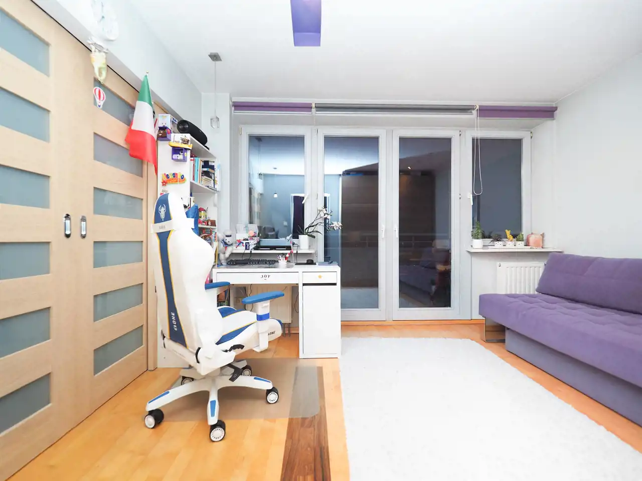 – przestronny salon z wyjściem na balkon,