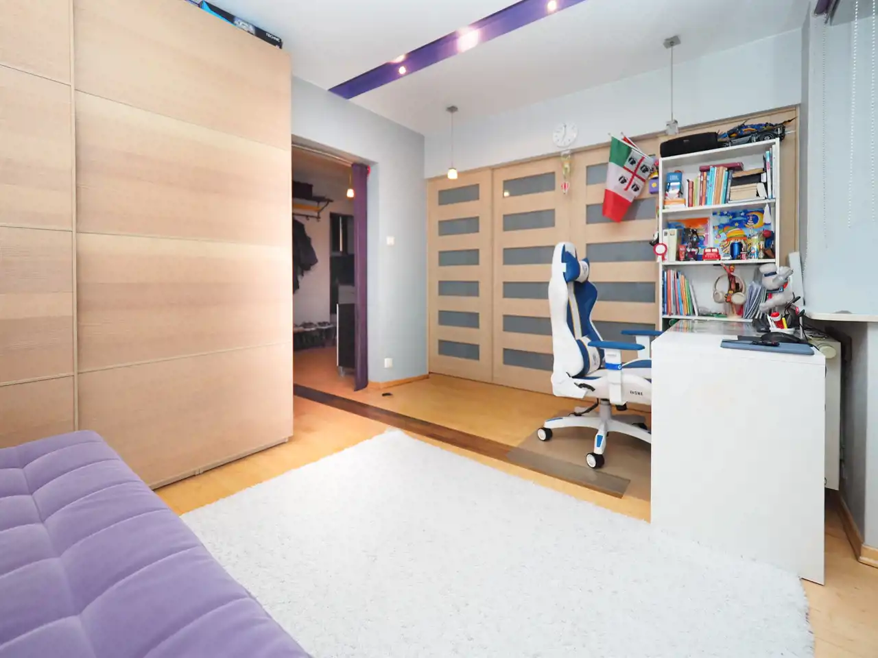 – sypialnia z łóżkiem oraz dużą szafą,