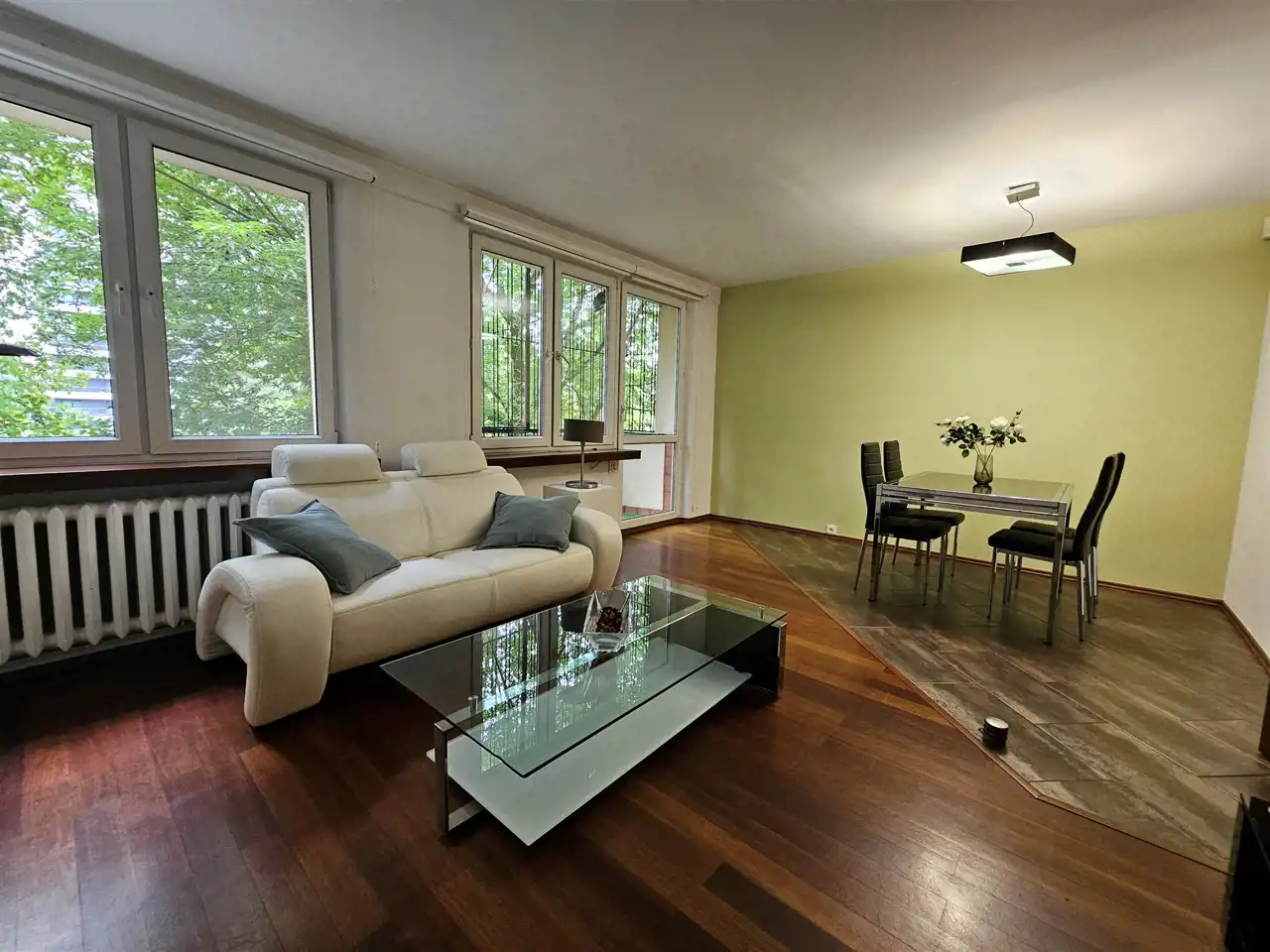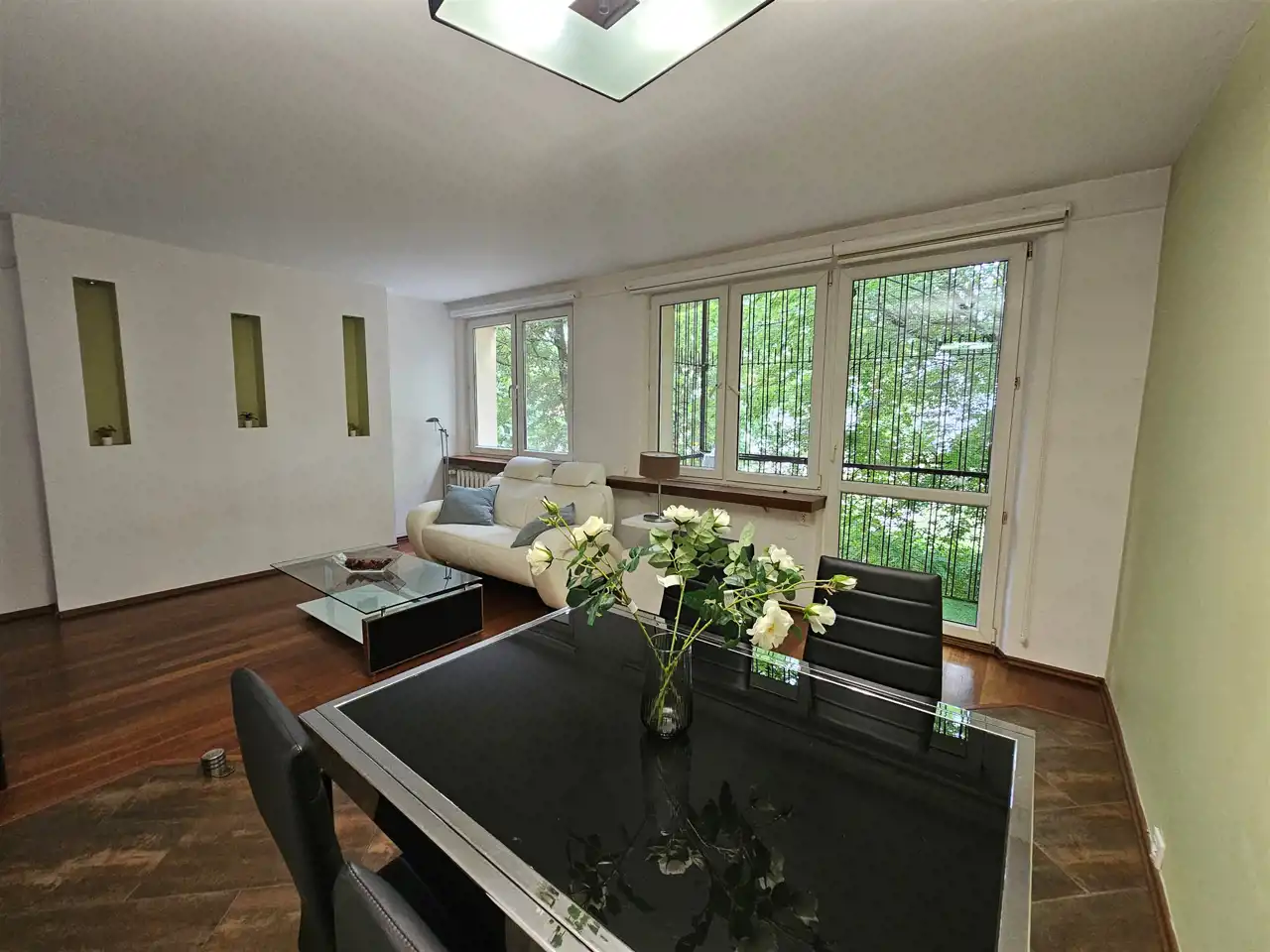 3 samodzielne pokoje. Salon ustawny, jasny z balkonem i widokiem na zieleń.