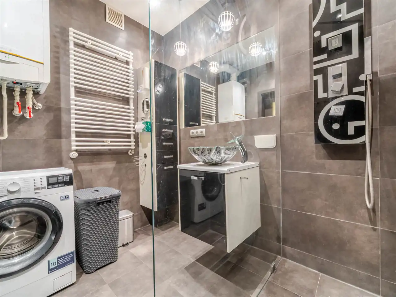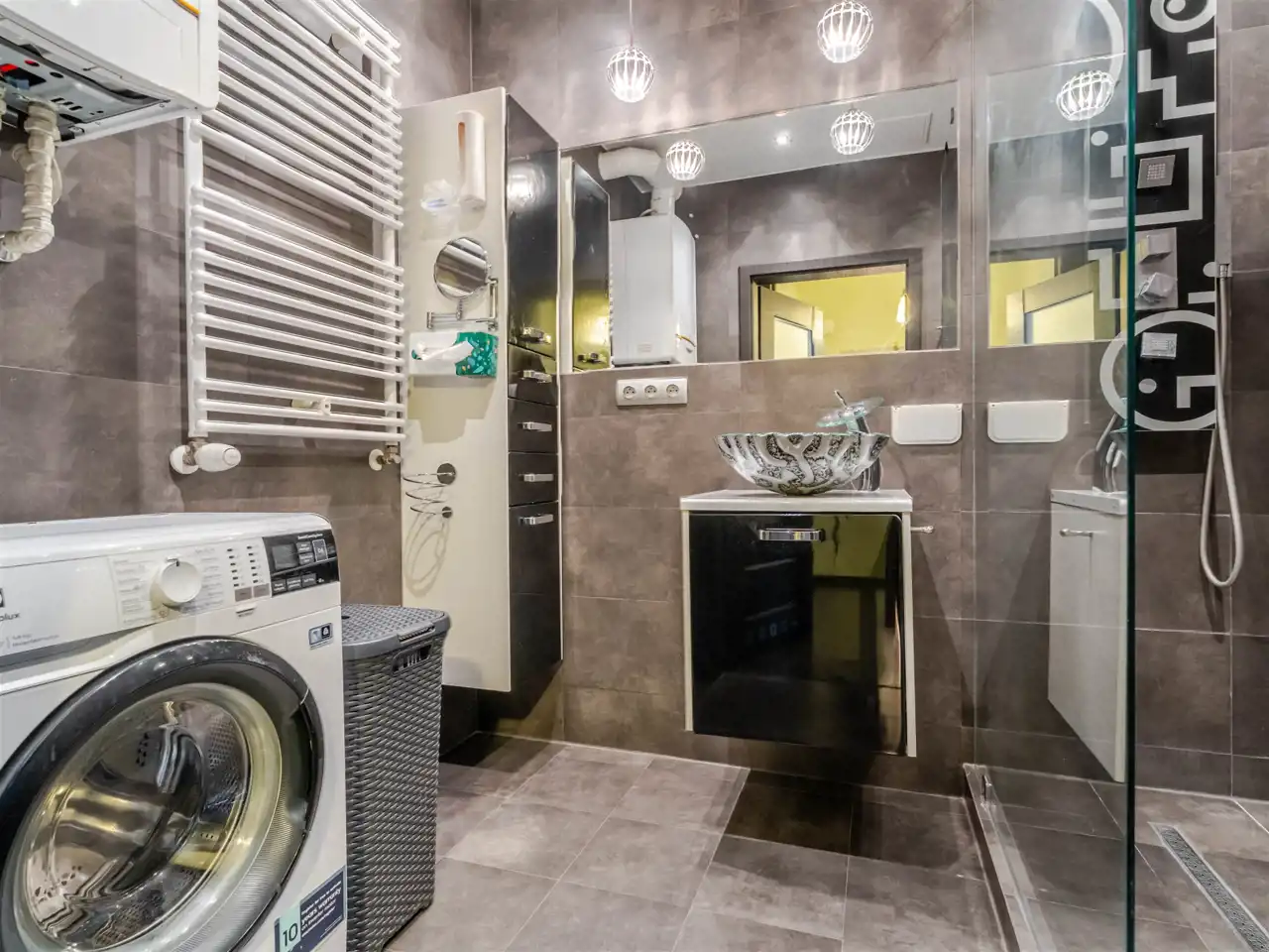 - Media Ogrzewanie: piec dwufunkcyjny; Woda: piec gazowy dwufunkcyjny; Gaz: tak - miejski