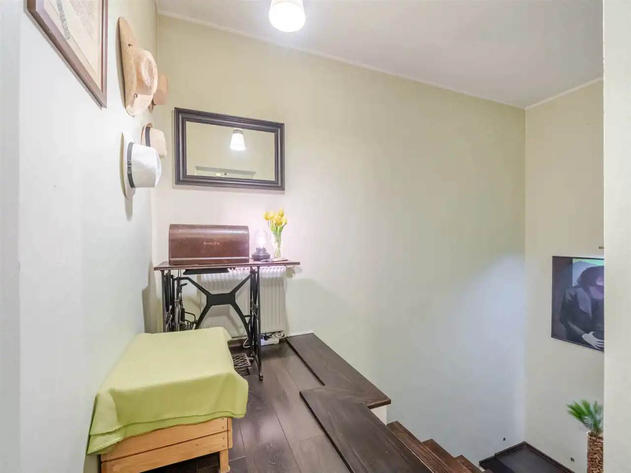 Ogrzewanie i ciepła woda z pieca gazowego 2-funkcyjnego. Okna PCV, podłogi w łazience, kuchni i wc z terakoty, w pozostałych pomieszczeniach z paneli drewnianych. Schody klatki schodowej - z deski dębowej - lakierowane. Mieszkanie do zamieszkania, do odświeżenia, nie wymaga prac remontowych.