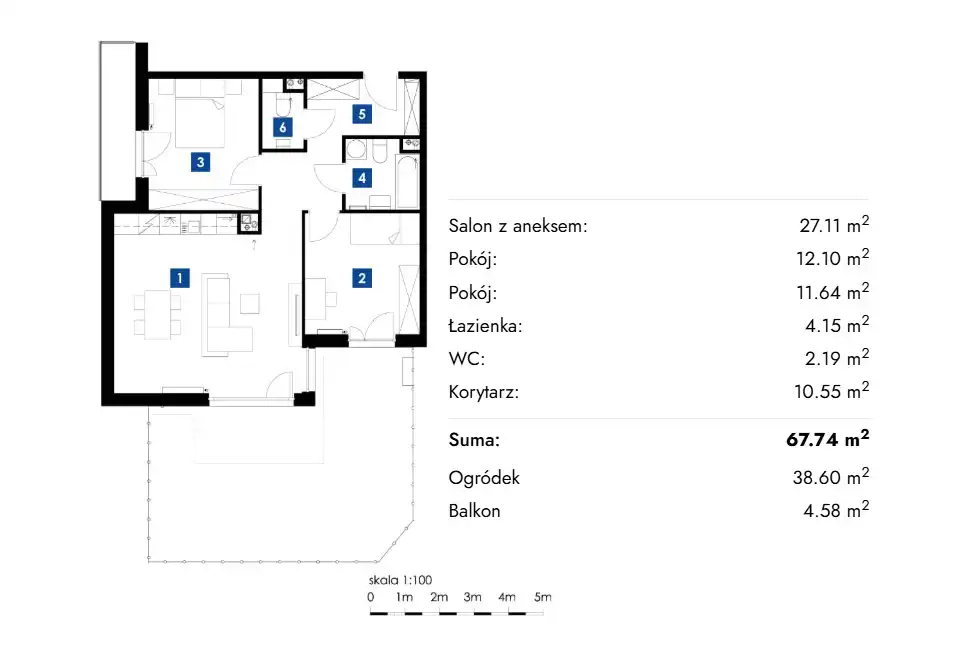 • Charakterystyka mieszkania 67.74 m2, 3 pokoje