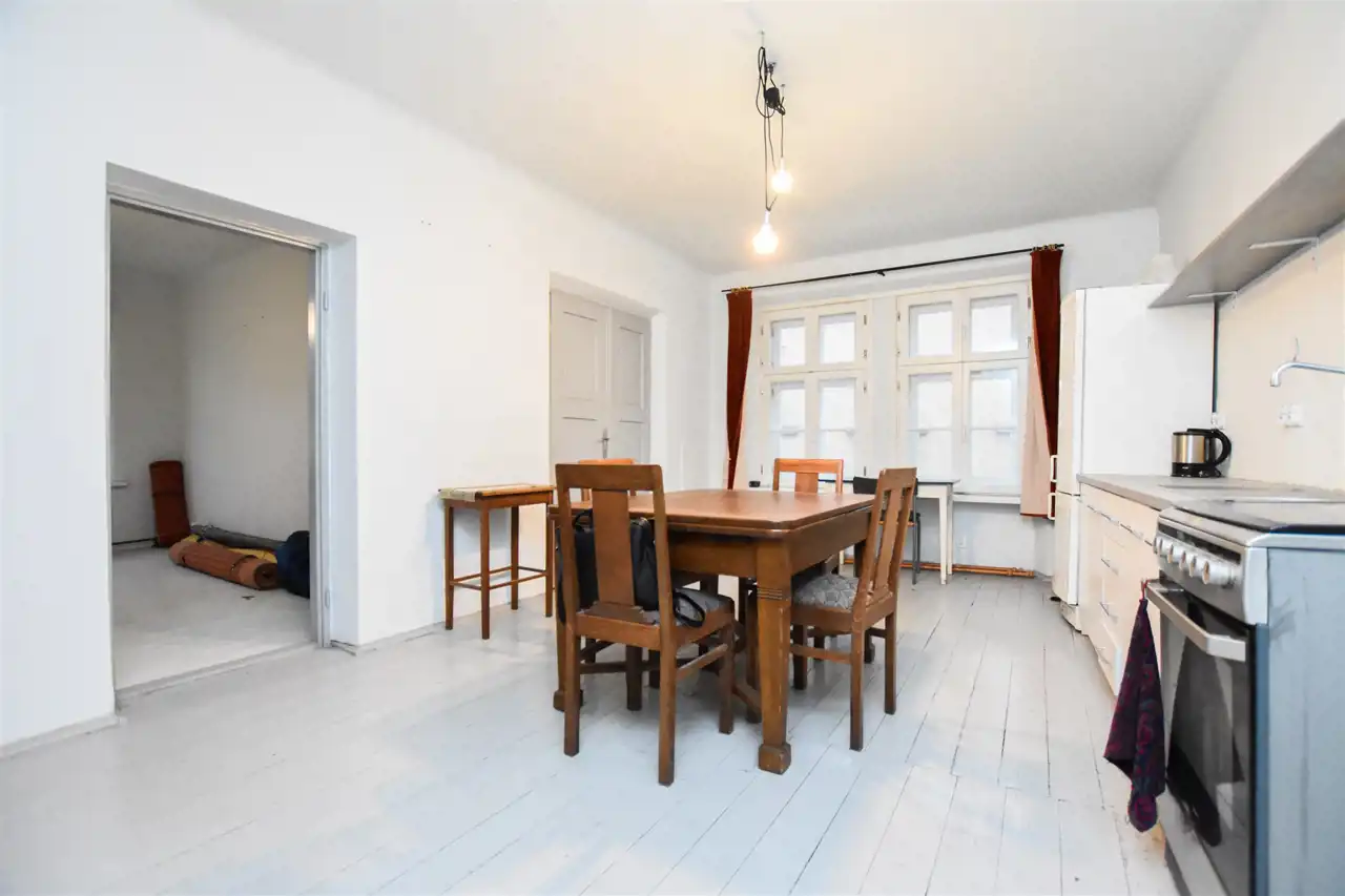 Mieszkanie jest wyjątkowo jasne i przytulne. Składa się z trzech niezależnych pokoi, z czego jeden posiada wejście bezpośrednio z klatki schodowej — istnieje jednak możliwość zamontowania drzwi, aby połączyć go z pozostałą częścią mieszkania. Duża kuchnia może pełnić funkcję salonu z aneksem kuchennym. W głównej części mieszkania zostały wymienione okna na nowe oraz została zmodernizowana instalacja elektryczna. Mieszkanie częściowo wymaga remontu, co daje możliwość aranżacji według własnych potrzeb i gustu.