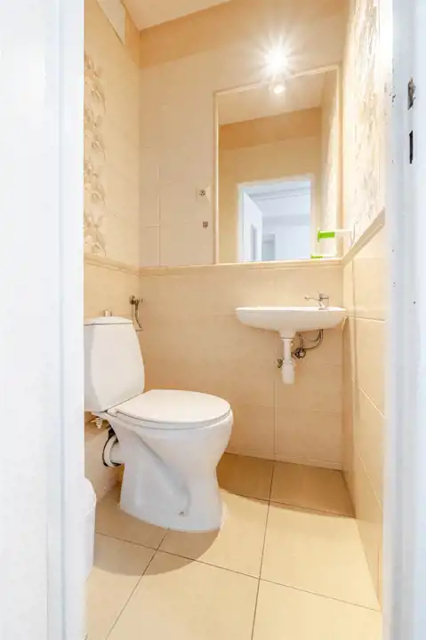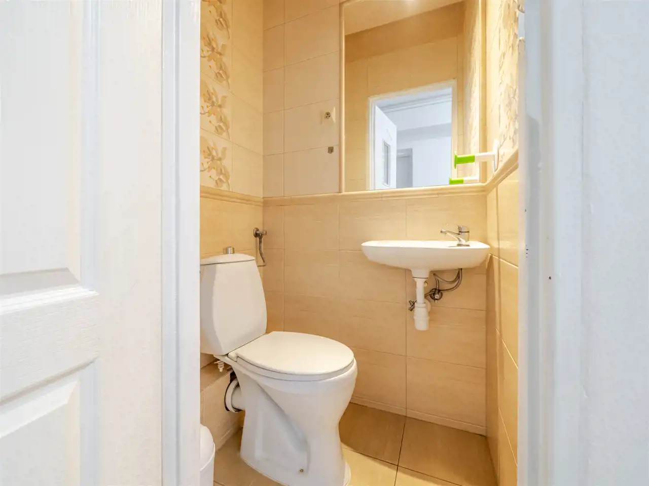 Ściany: tynk cementowo-wapienny malowany farbą, w łazience i WC płytki ceramiczne, w kuchni częściowo panel ścienny