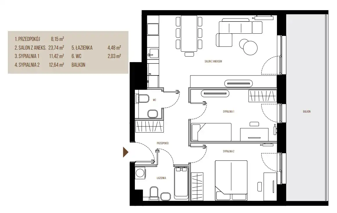 • Mieszkania o powierzchni od 39 m² do 114 m²