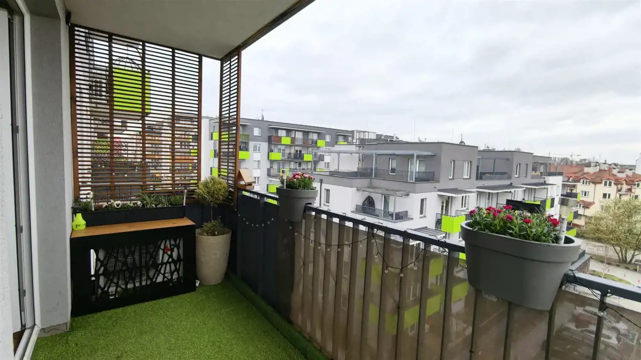 Dodatkowym atutem jest balkon, który stanowi idealną przestrzeń do relaksu – szczególnie o zachodzie słońca. Przy dobrej widoczności możliwe jest nawet dostrzeżenie Tatr.