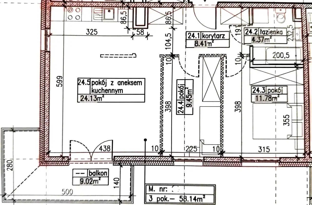 - Charakterystyka mieszkania 58.14 m2, 3 pokoje