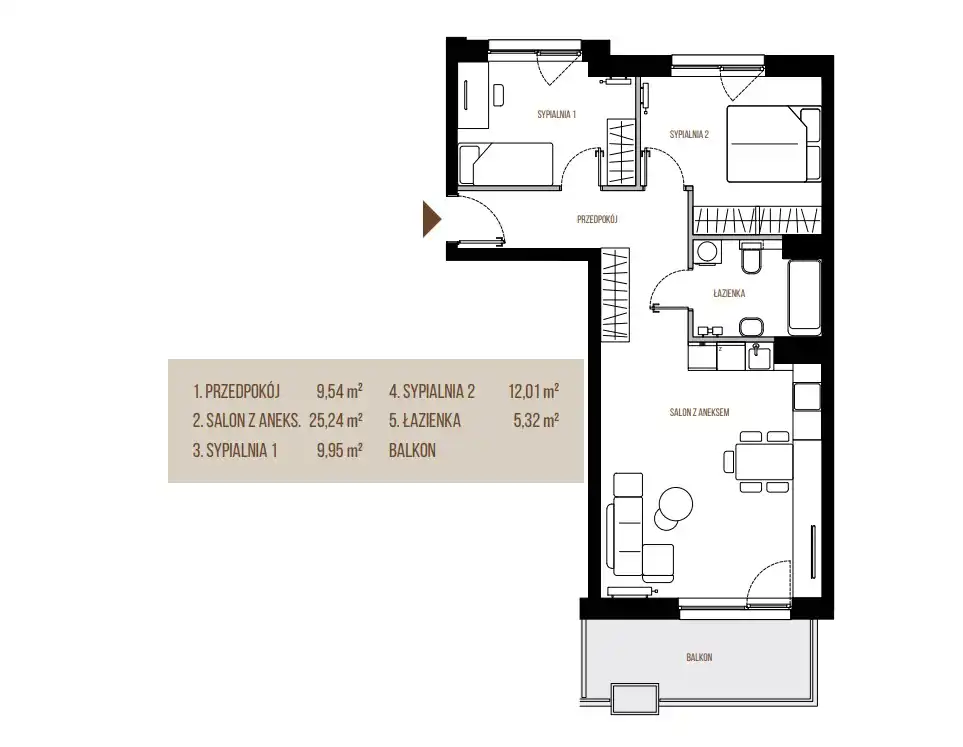 • Charakterystyka mieszkania 62.06 m2, 3 pokoje