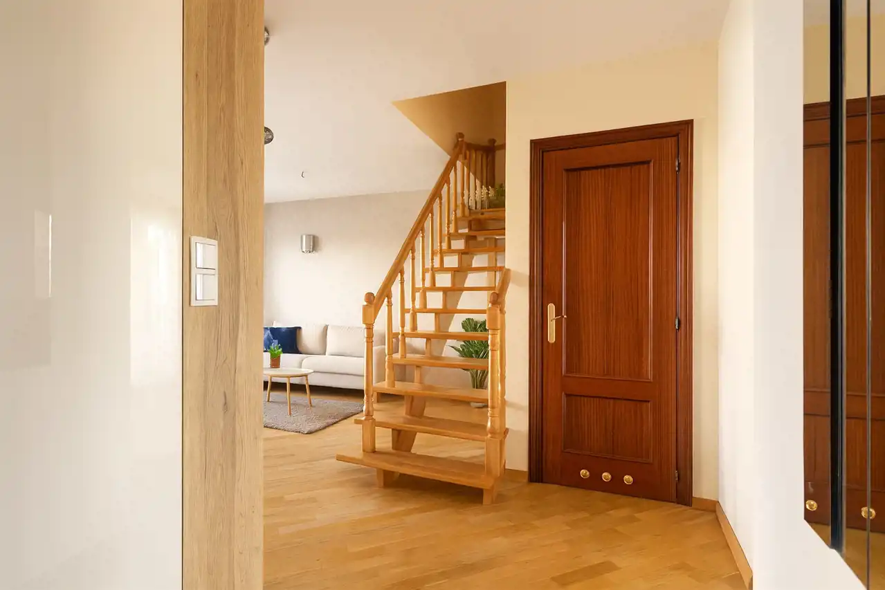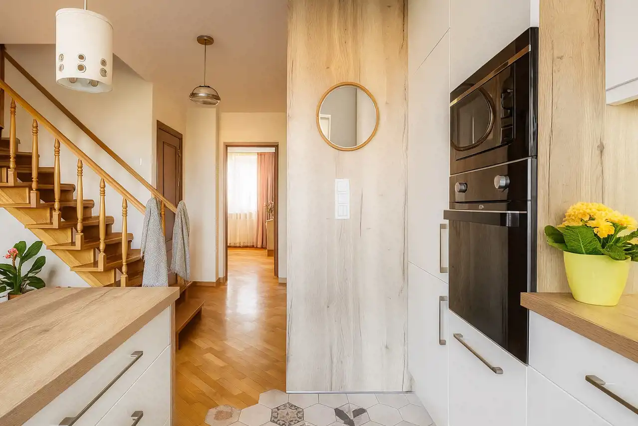 Stałe zabudowy i AGD w cenie. Podłogi drewniane, okna PCV na poziomie pierwszym.
