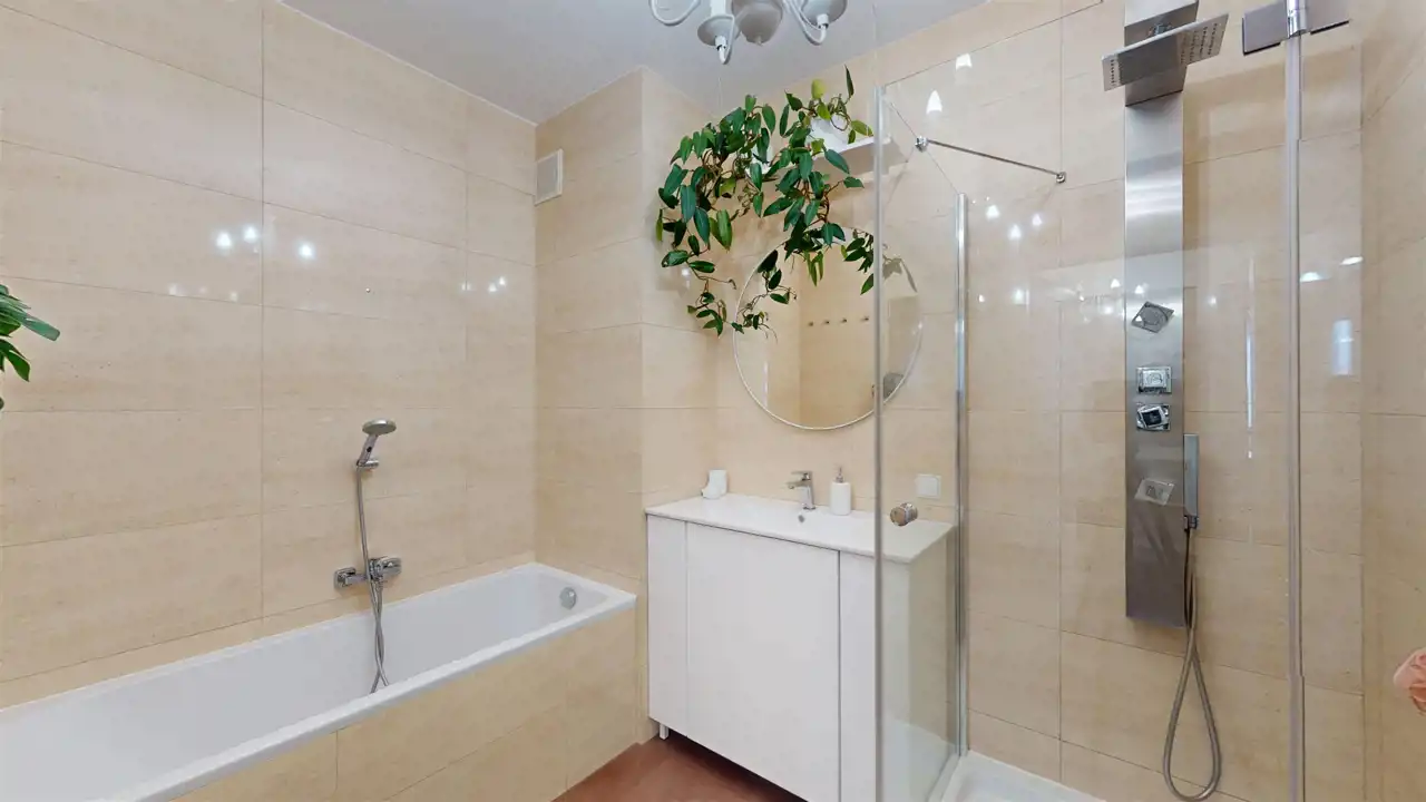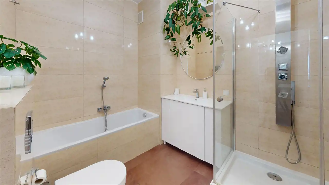 Łazienka z wanną i kabiną prysznicową.