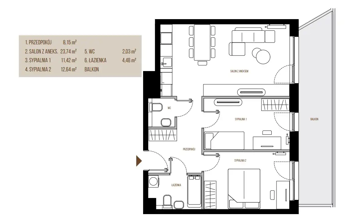 • Mieszkania o powierzchni od 39 m² do 114 m²