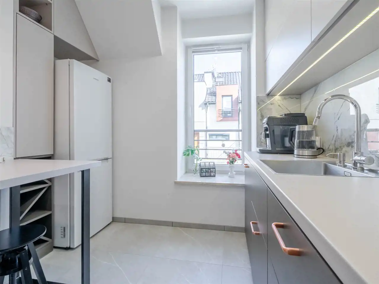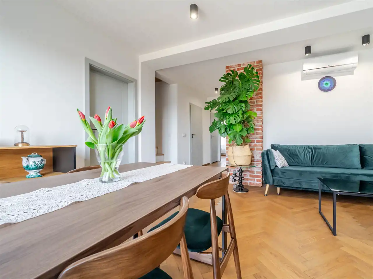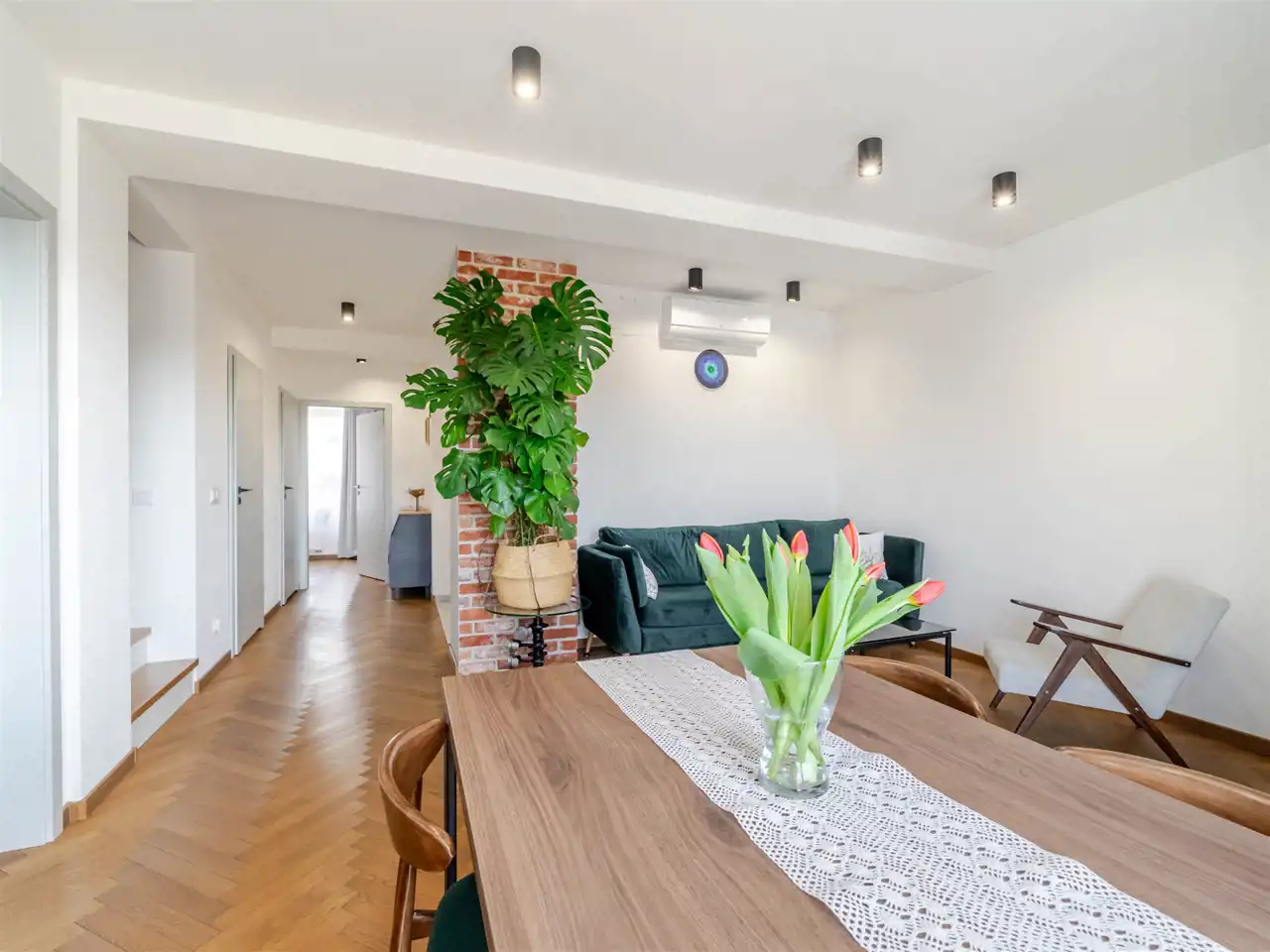 Mieszkanie znajduje się na kameralnym, zamkniętym osiedlu, w otoczeniu zieleni i spokojnej zabudowy. Dzięki przemyślanemu układowi oraz dodatkowej przestrzeni na poddaszu daje poczucie komfortu porównywalne z mieszkaniem w domu jednorodzinnym. Nieruchomość została wykończona przez obecnych właścicieli z dużą dbałością o detale i przeznaczona na własne potrzeby.