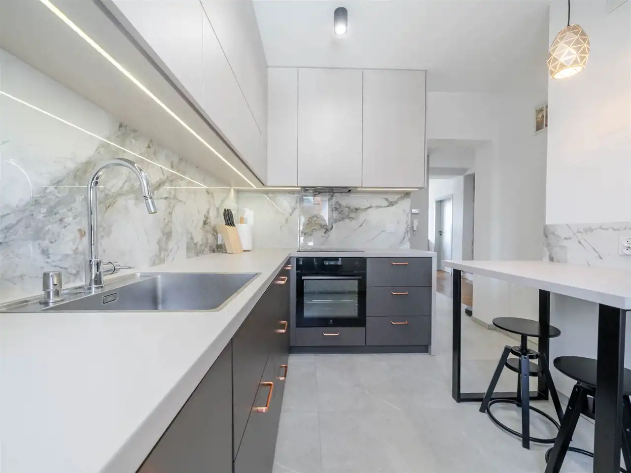 Przemyślany rozkład pomieszczeń zapewnia idealną równowagę między częścią dzienną a prywatną, poczucie przestrzeni i wygody.