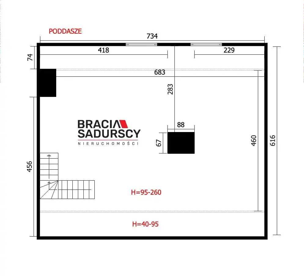 - wschód – kuchnia oraz sypialnia + okna poddasza
