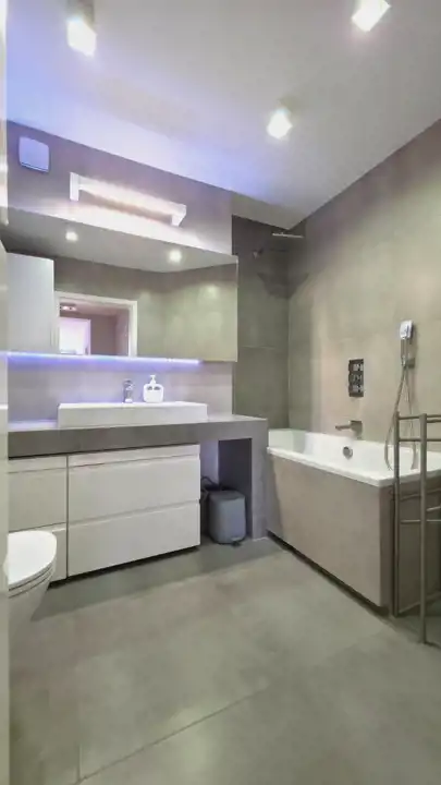 - w łazience wanna + deszczownica, umywalka, wc, pralka w zabudowie,