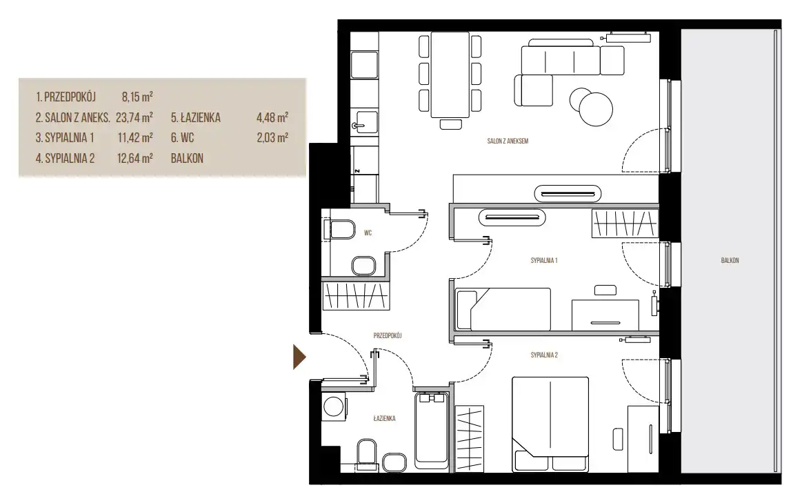 • Mieszkania o powierzchni od 39 m² do 114 m²