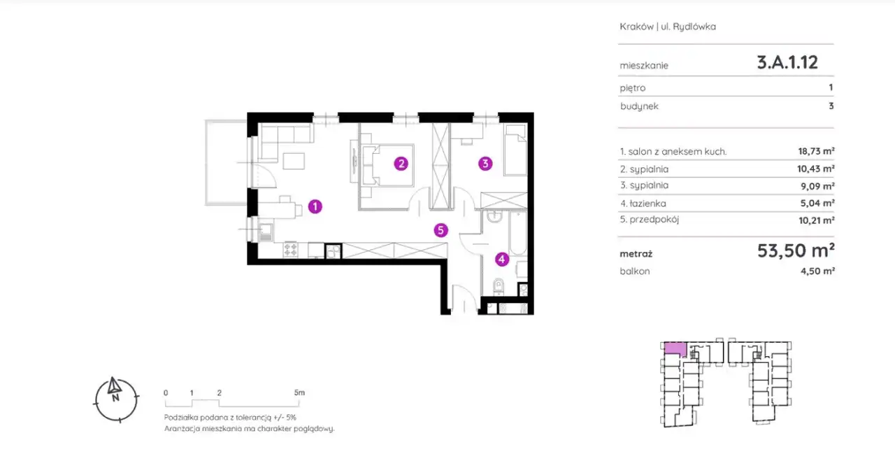 - Charakterystyka mieszkania 53.5 m2, 3 pokoje