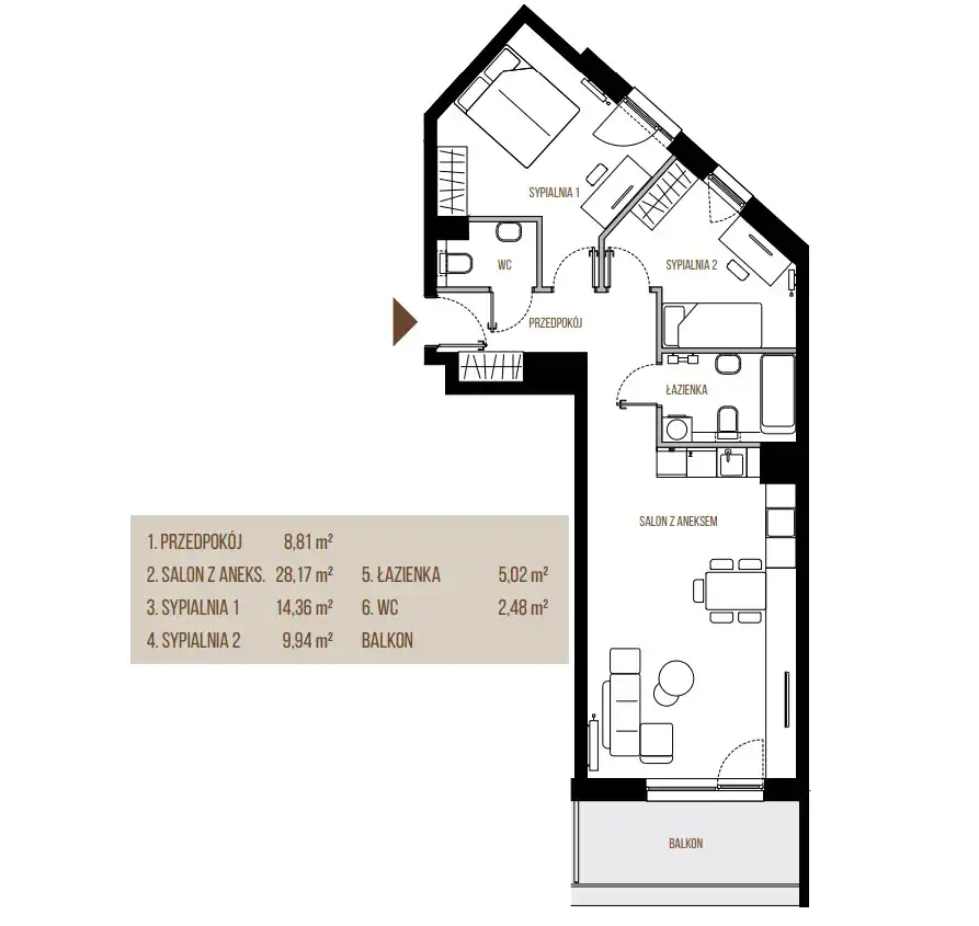 • Charakterystyka mieszkania 68.78 m2, 3 pokoje
