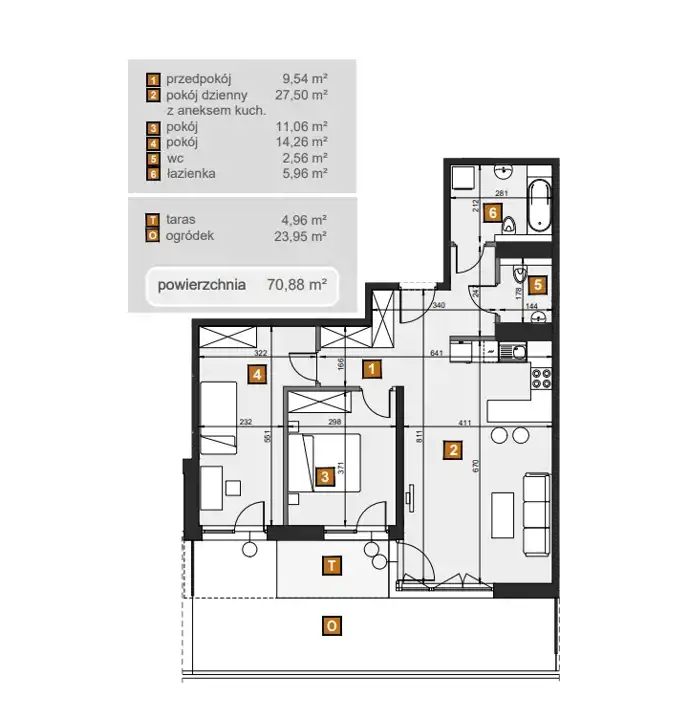 - Charakterystyka mieszkania 70.88 m2, 3 pokoje