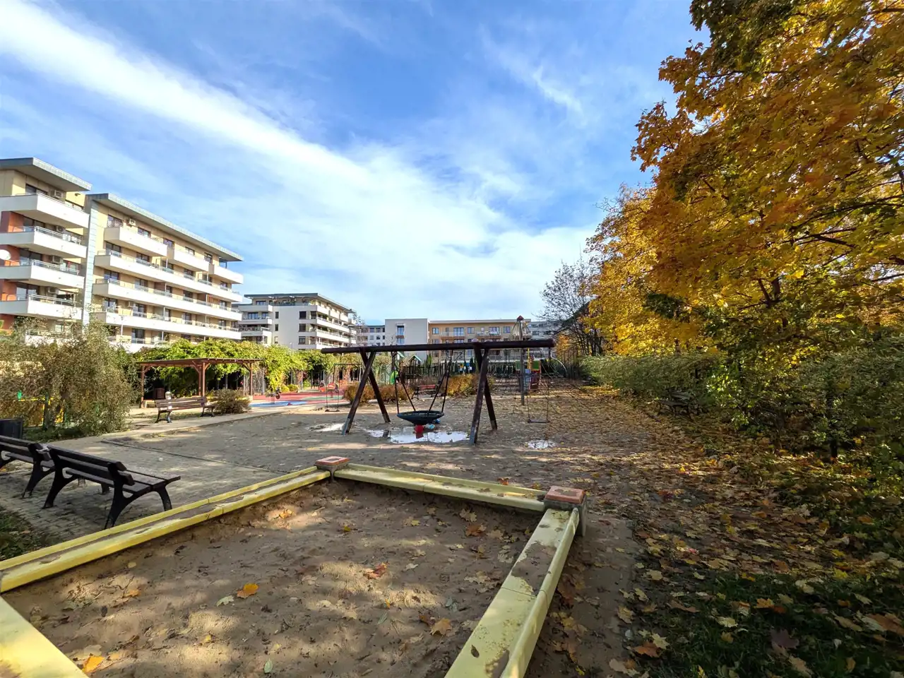 - dwa place zabaw i boisko, miejsca zacienione z ławkami na spacery, przestrzeń wokół bloku