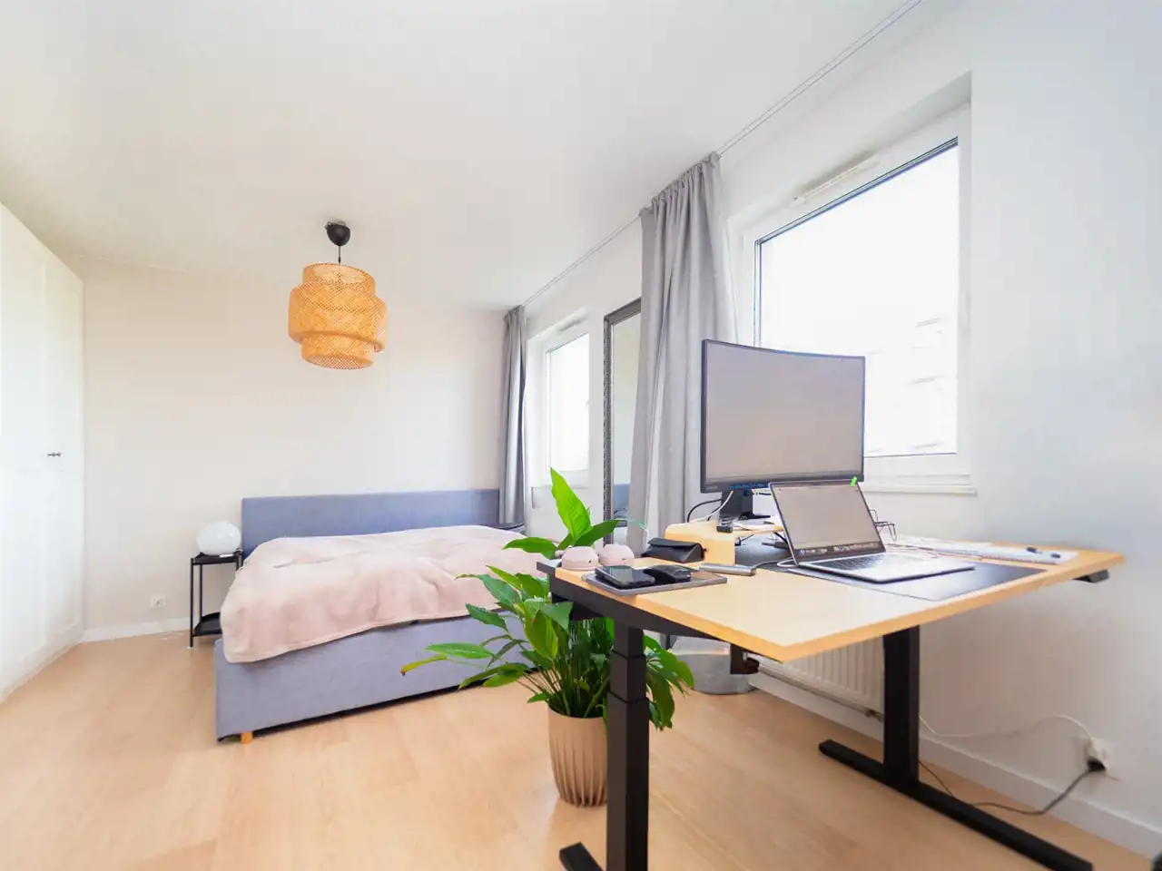 Mieszkanie zostało wykończone z dużą dbałością o detale i wyróżnia się wysoką jakością wykończenia. Lokal jest w pełni umeblowany i gotowy do wprowadzenia. Dodatkowym atutem jest klimatyzacja, zapewniająca komfort użytkowania przez cały rok.