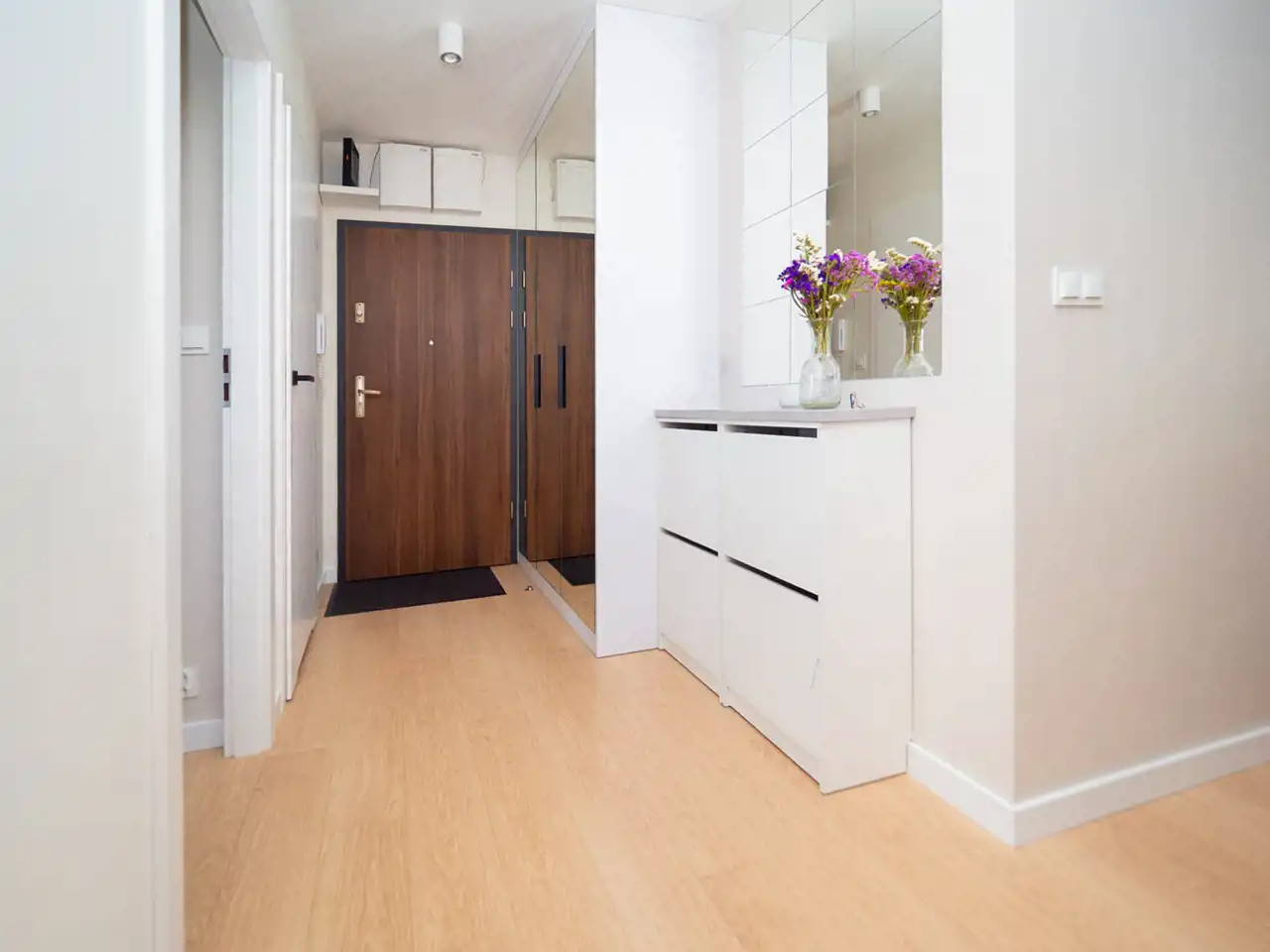funkcjonalny hol z miejscem do przechowywania.