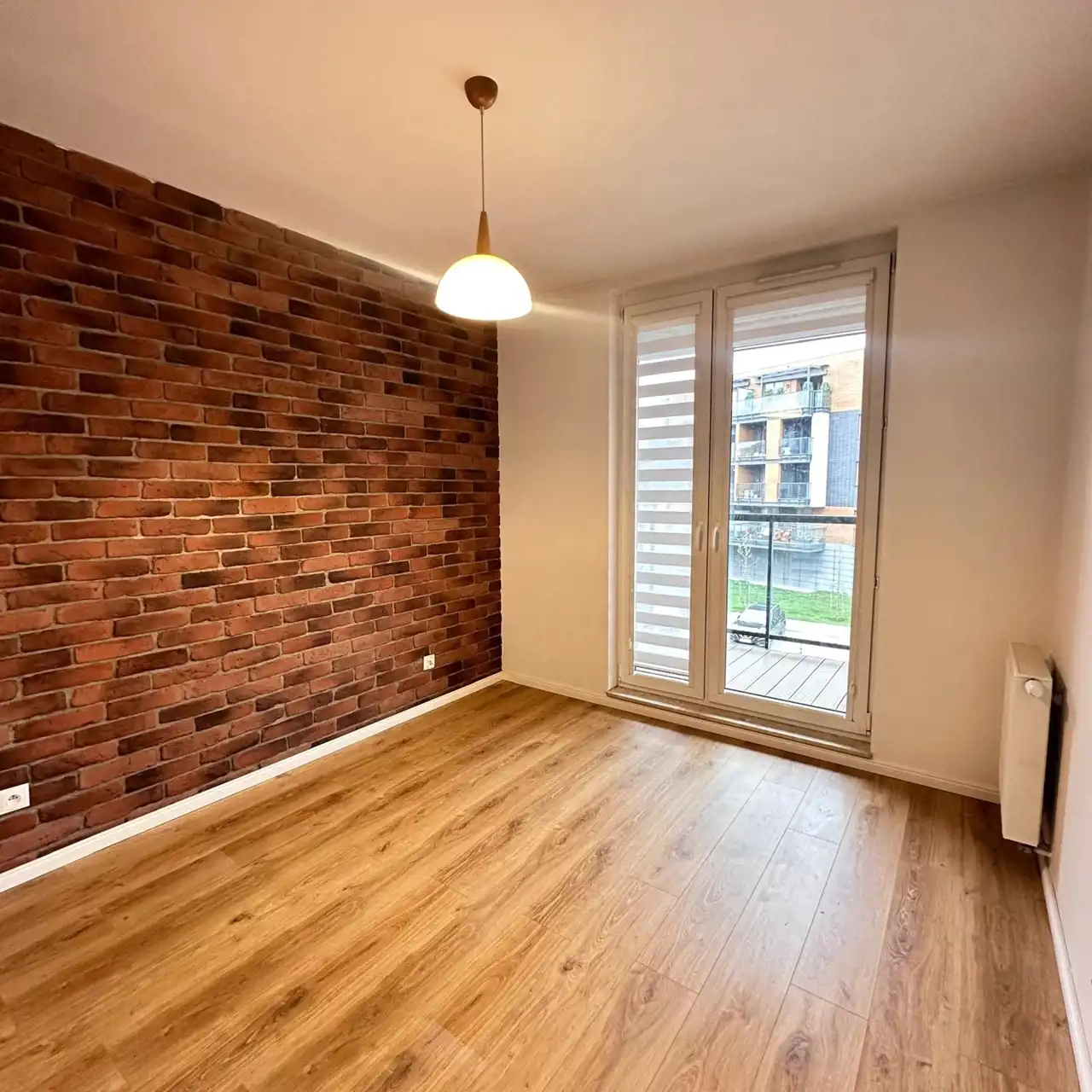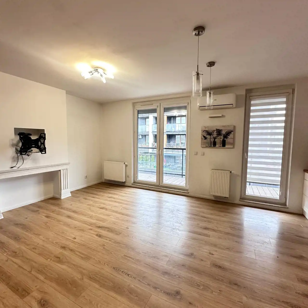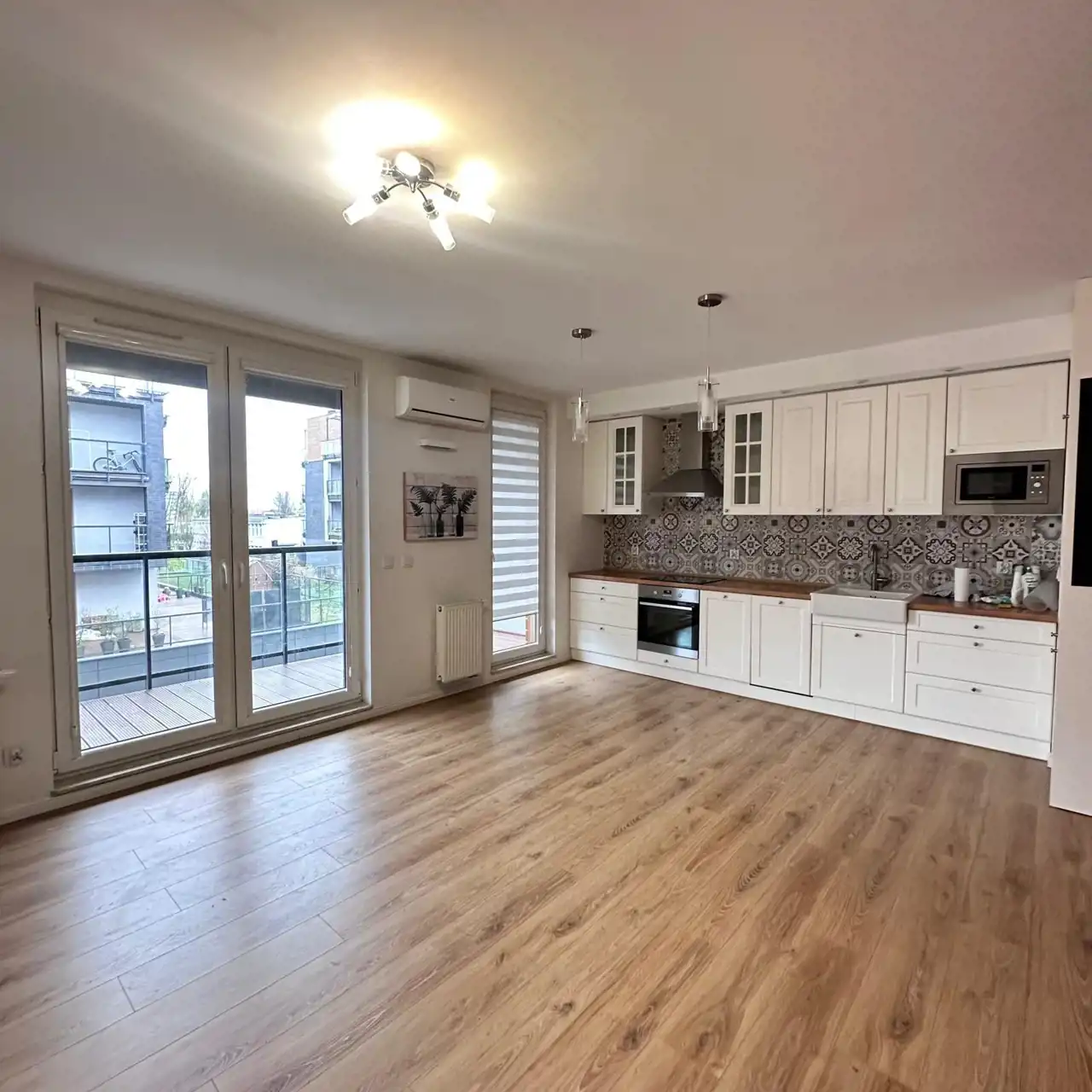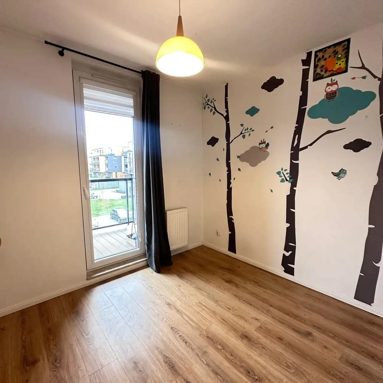 - salon z aneksem kuchennym, dwie sypialnie, łazienka z toaletą oraz przedpokój