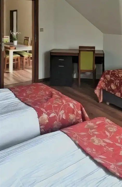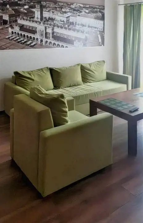 Mieszkanie położone jest na 4 piętrze w kamienicy 4 piętrowej ( brak windy ) Nadbudowa z 2015 roku ( remont w 2020) Składa się z salonu z aneksem kuchennym, sypialni z garderobą , łazienki z WC. Mieszkanie wyposażone jest w sprzęt AGD: zmywarka, kuchenka gazowa z piekarnikiem , lodówka z zamrażalnikiem, okap, pralko-suszarka. Kuchnia w pełni wyposażona Mieszkanie jest w pełni umeblowane na co składa się: -szafa w przedpokoju -komoda , szafa, garderoba , oraz duże wygodne łóżko w sypialni -meble kuchenne (białe lakierowane ), rozkładany stół z 4 krzesłami , rozkładana kanapa , oraz -stolik kawowy w salonie.