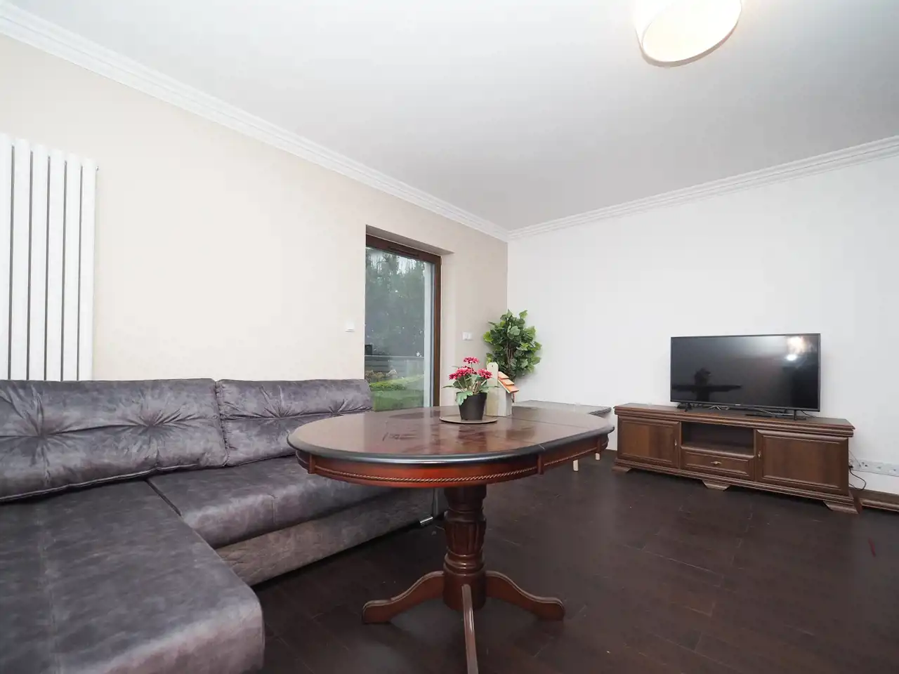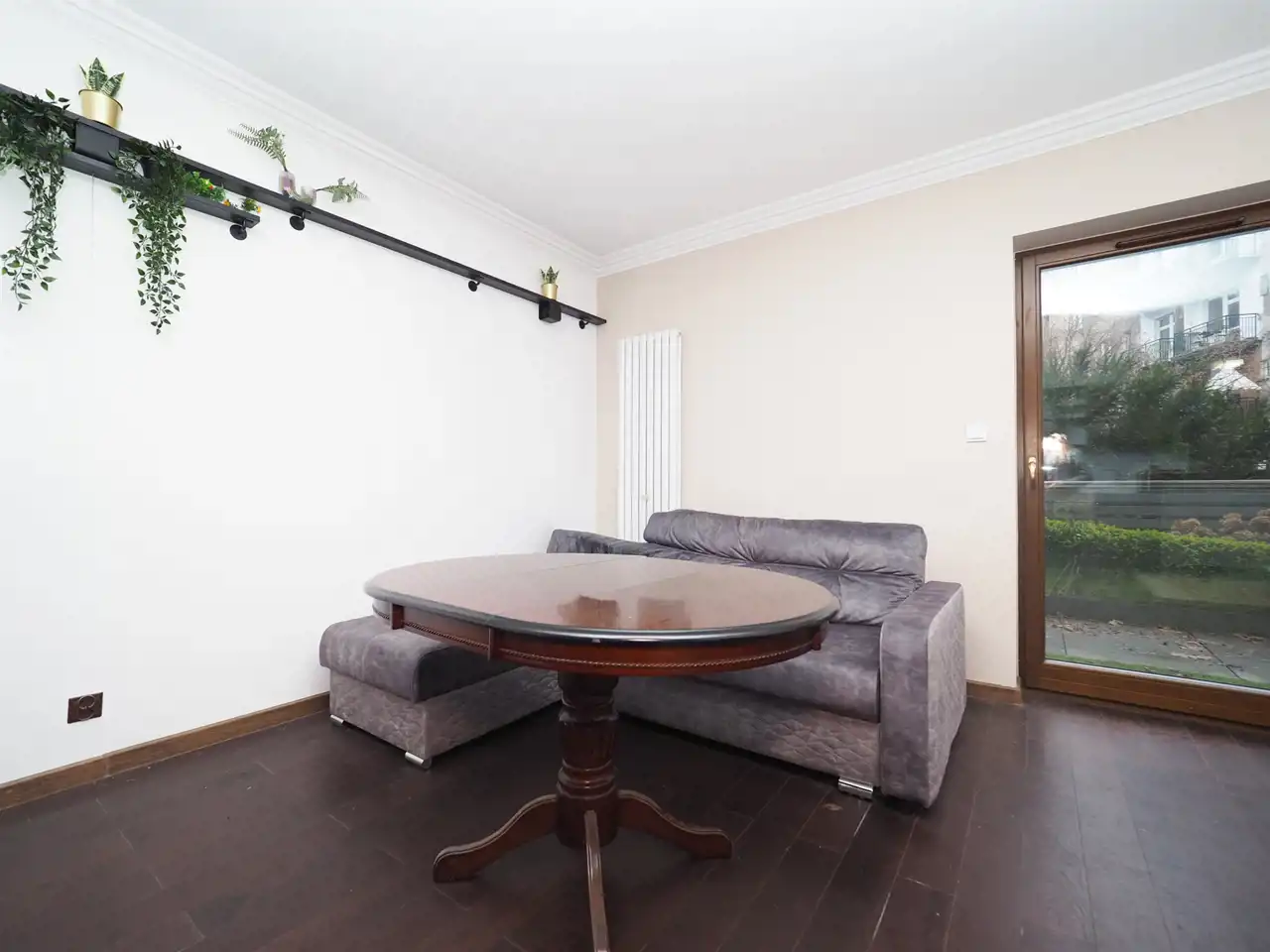 – duży salon z aneksem kuchennym i wyjściem na ogród (lodówka, mikrofala, zmywarka, płyta indukcyjna),
