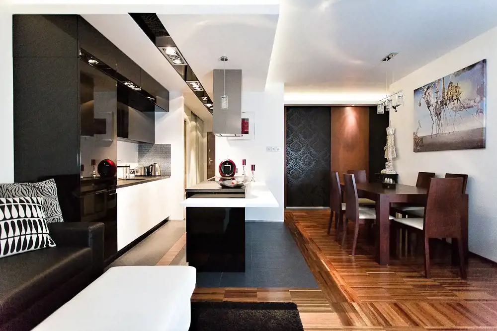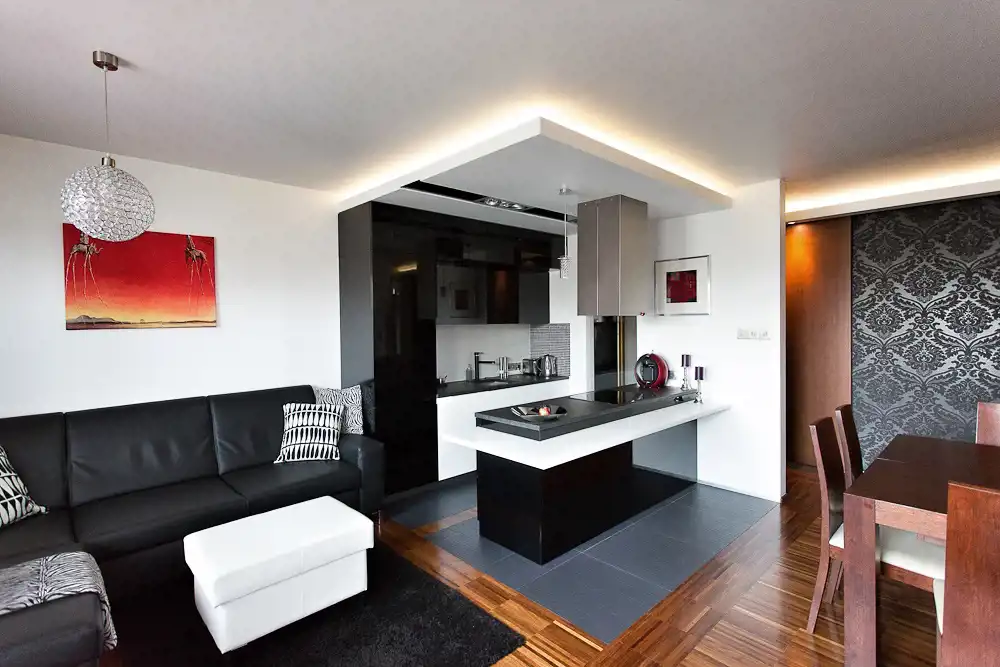 salon z otwartą kuchnia + 2 sypialnie