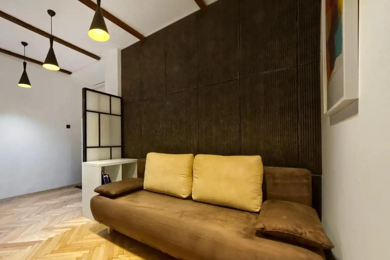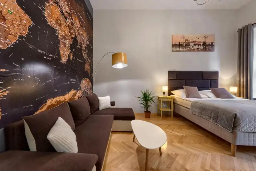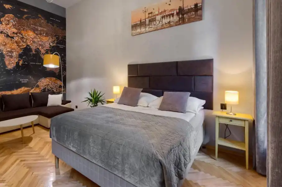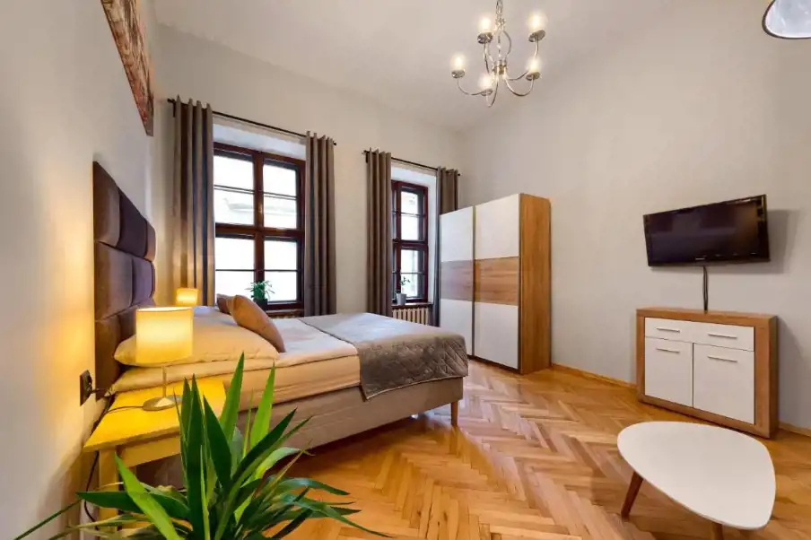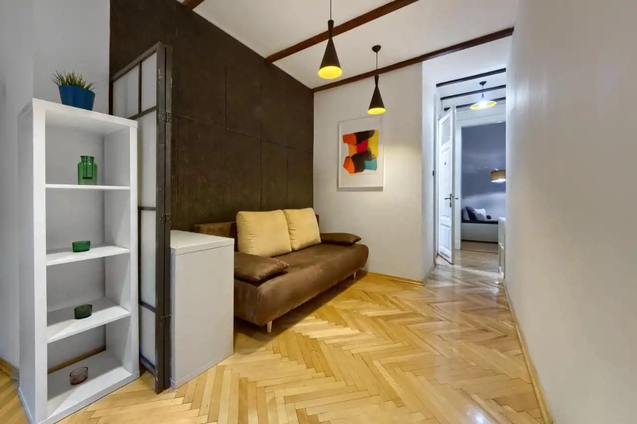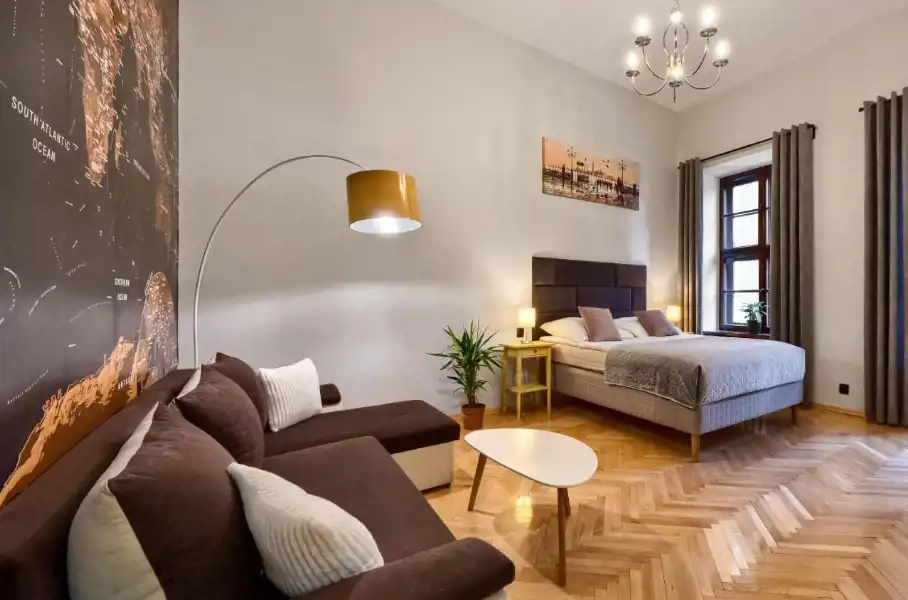 OFERUJEMY PAŃSTWU DO SPRZEDAŻY mieszkanie w ścisłym centrum Starego Miasta. Mieszkanie znajduje się na I piętrze w zabytkowej kamienicy. Mieszkanie o powierzchni 45m2 i w jego skład wchodzi: przestronny pokój podzielony na część sypialnianą z łóżkiem kontynentalnym oraz część wypoczynkową z narożnikiem, ławą i telewizorem.