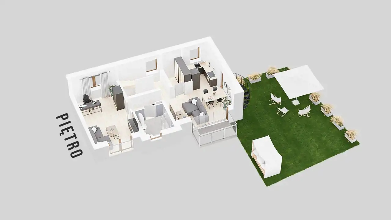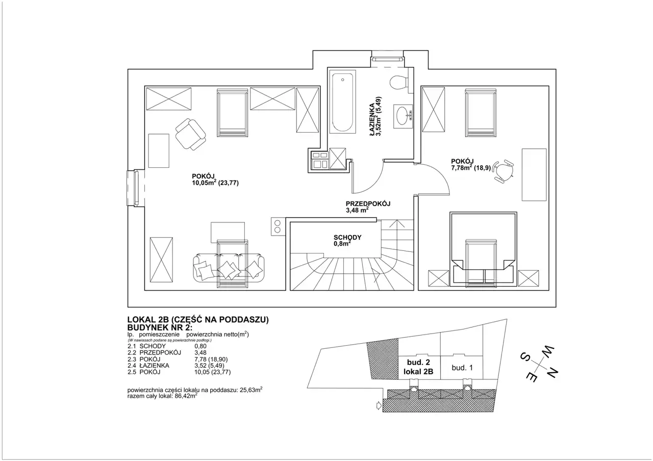 Te natomiast położone na pierwszym piętrze są lokalami dwupoziomowymi i obejmują również poddasze.