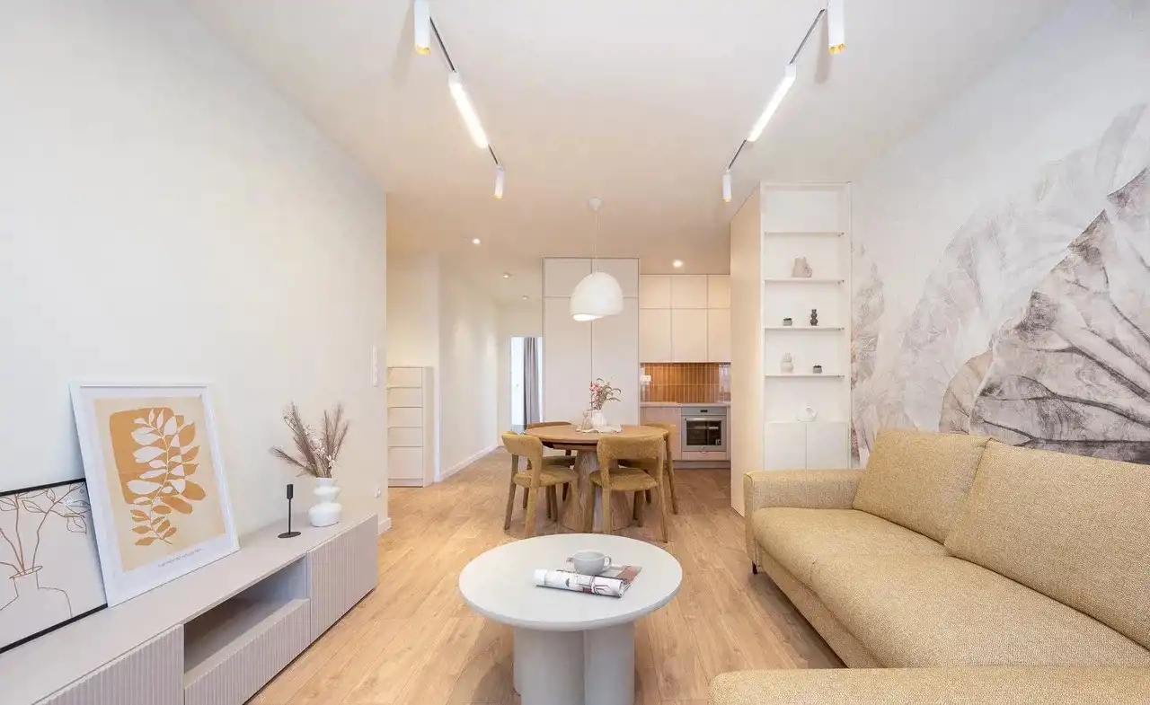 - salon z aneksem kuchennym, dwa osobne pokoje, łazienka z toaletą, przedpokój