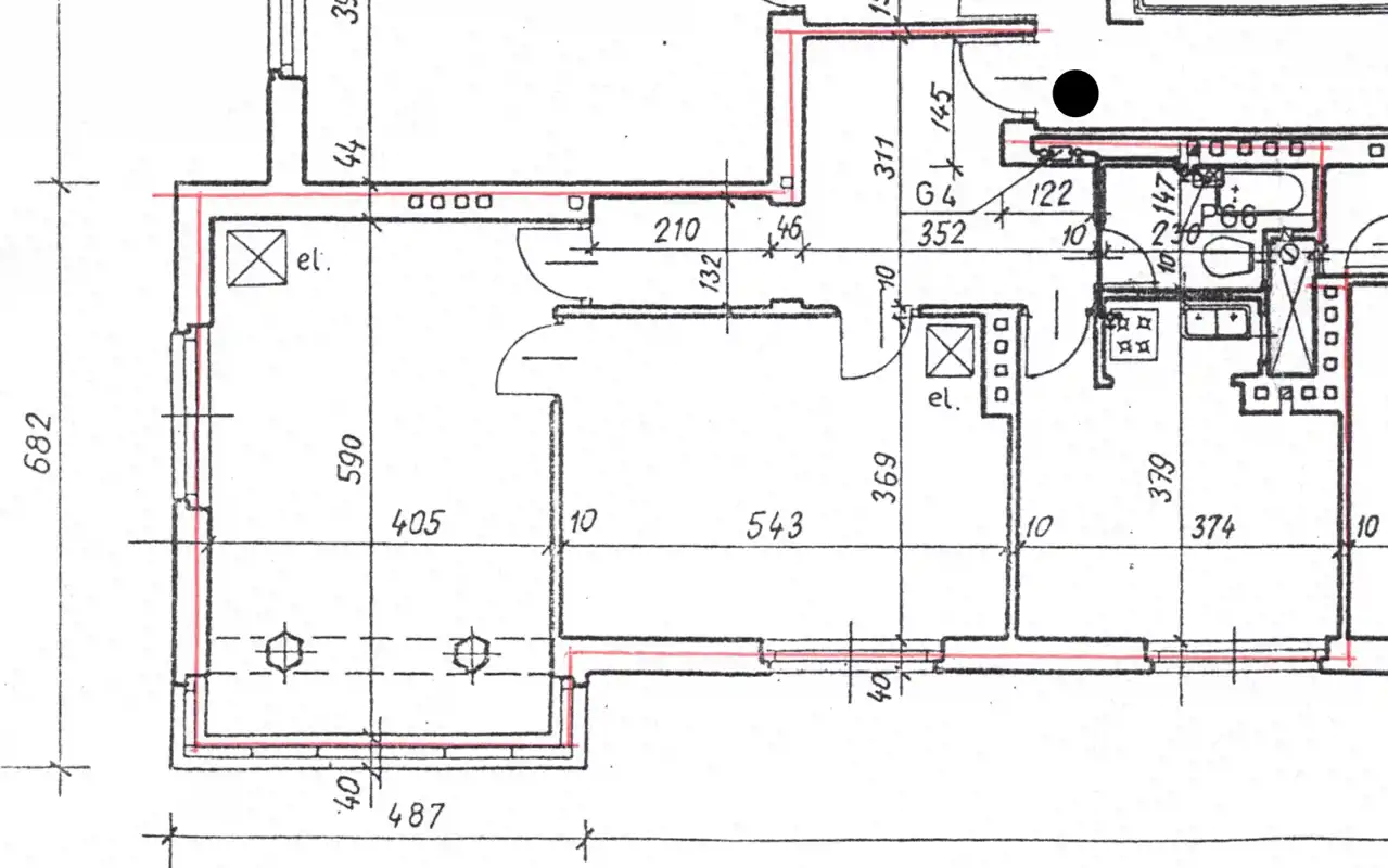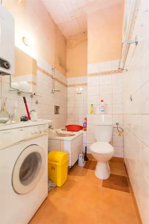 - Media Ogrzewanie: elektryczne; Woda: ciepła - piecyk gazowy; Gaz: jest