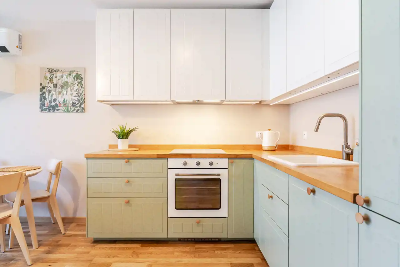 - przestronny salon z aneksem kuchennym - w pełni wyposażany także w sprzęty typu lodówka, zmywarka, piekarnik, płyta indukcyjna, telewizor The Frame, wygodny narożnik, jednostkę klimatyzacji i meble