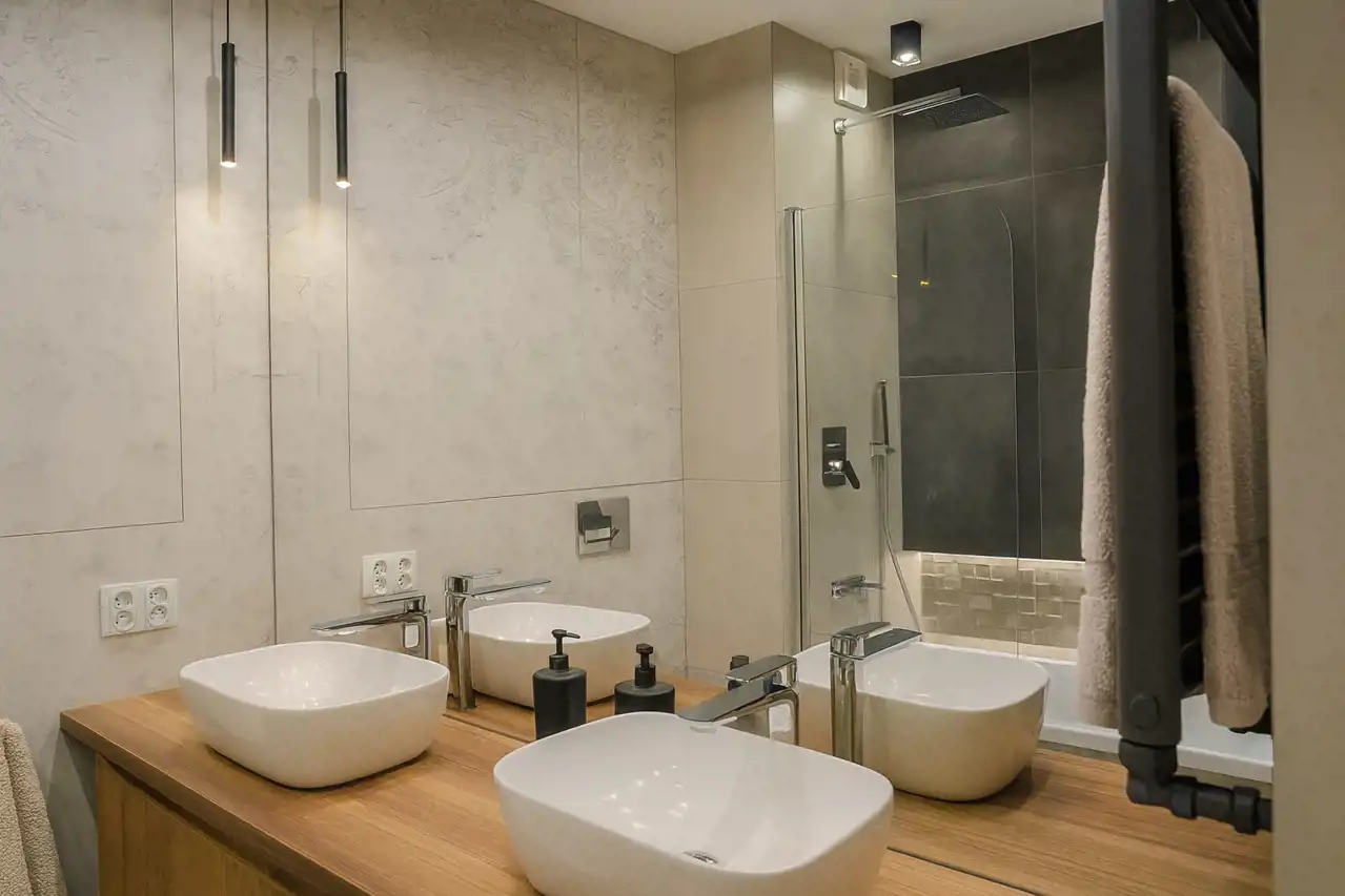 Ogrzewanie i ciepła woda są z sieci miejskiej. Czynsz przy trzech osobach wynosi 860 złotych i zawiera wszystkie opłaty prócz prądu.