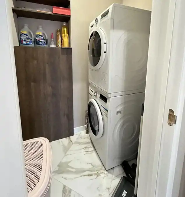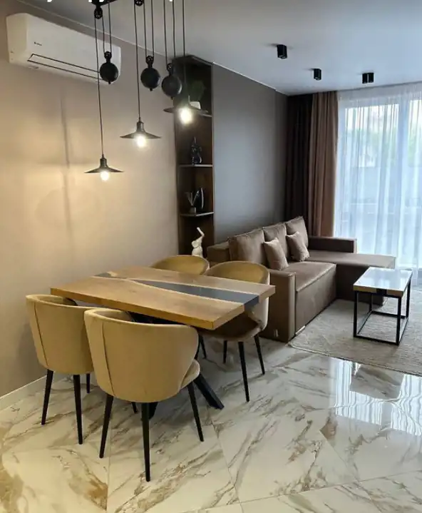 Po świeżym remoncie wykonanym przez projektanta, umeblowane i wyposażone we wszystkie niezbędne sprzęty, w pełni umeblowane, gotowe do komfortowego zamieszkania. Wiele miejsc do przechowywania, wszystkie meble wykonane na zamówienie. W mieszkaniu znajdują się 2 łóżka i sofa (wszystkie z mechanizmem podnoszącym).