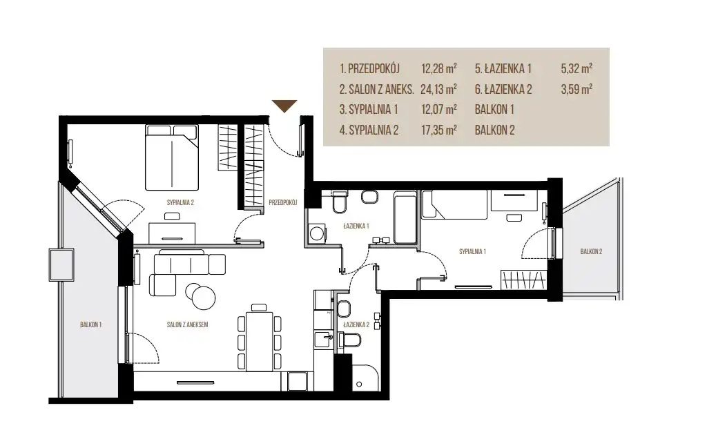 • Charakterystyka mieszkania 74.74 m2, 3 pokoje
