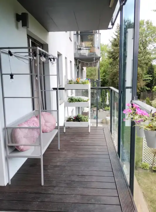 Okna mieszkania są skierowane na stronę północną i zachodnią, a ich ilość zapewnia optymalne doświetlenie. Za oknami i z balkonu widać zieleń. Blok jest otoczony terenami zielonymi a osiedle zamknięte i monitorowane co zwiększa też poziom bezpieczeństwa.