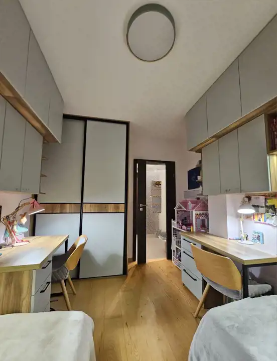 Mieszkanie o powierzchni 77,37 m2 składa się z pokoju dziennego z aneksem kuchennym, 3 pokoi, przedpokoju, łazienki oraz WC. Na podłogach w pokojach położona jest deska barlinecka, w pozostałych pomieszczeniach płytki gresowe. We wszystkich oknach zostały zamontowane moskitiery. Mieszkanie gotowe do zamieszkania.