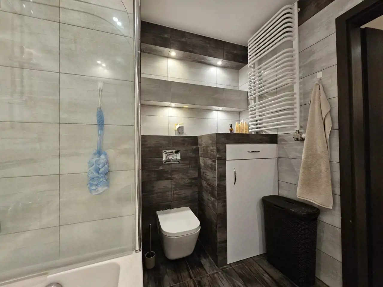 Czynsz wraz zaliczkami na media, wywóz śmieci przy 6 osobach oraz opłatą za miejsce postojowe wynosi 1160,00 zł. Dodatkowo płatny prąd według zużycia.