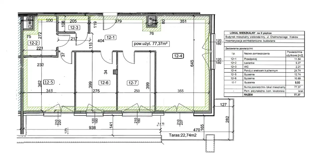 - Charakterystyka mieszkania 77.37 m2, 4 pokoje