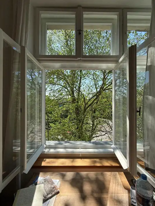 duze okna które wpuszczaja dużo swiatła i nadaja mieszkaniu klimatu