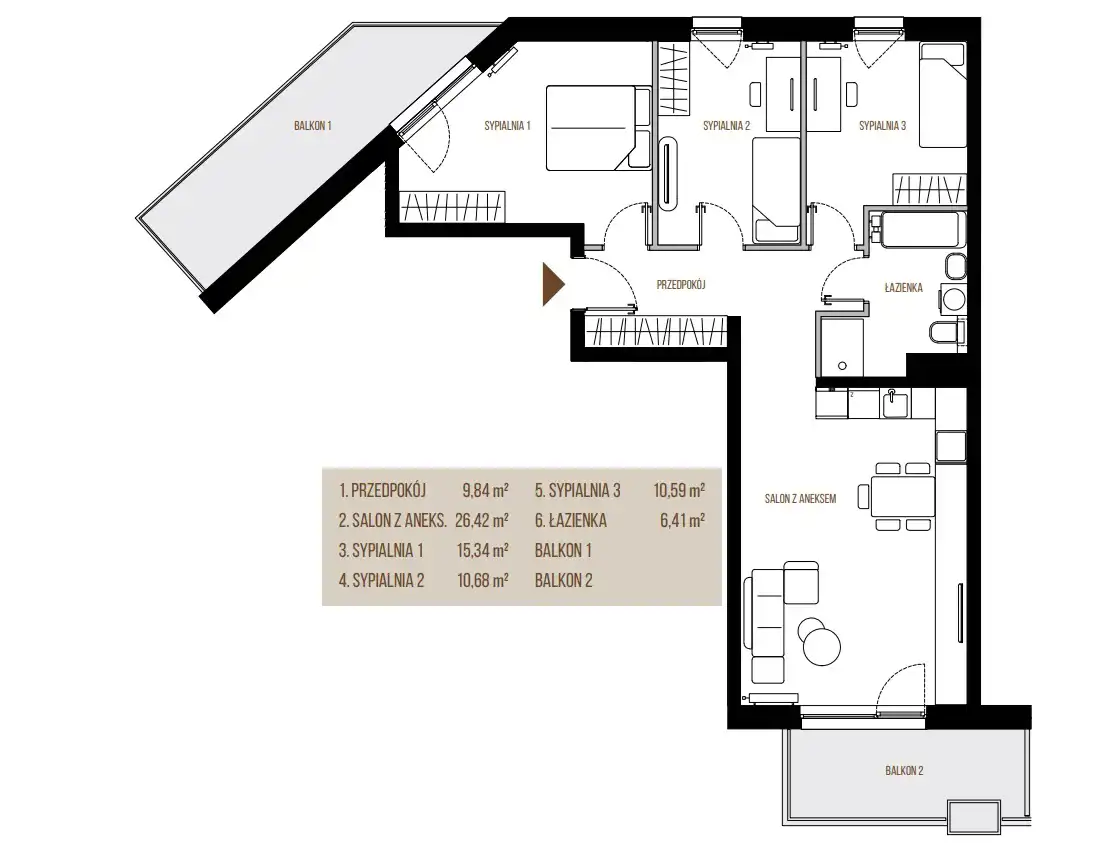 • Mieszkania o powierzchni od 39 m² do 114 m²