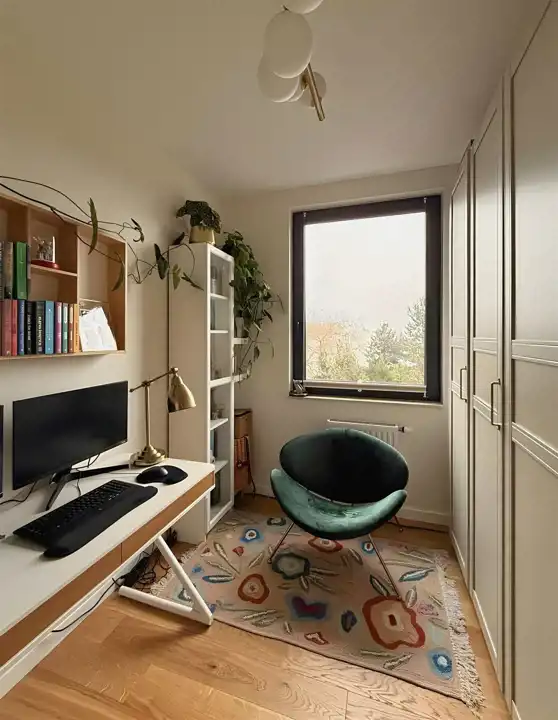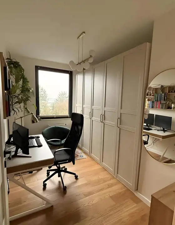 - 3 osobne, niezależne pokoje (obecnie 1 pełni funkcje sypialnia, a 2 pozostałe gabinetów)