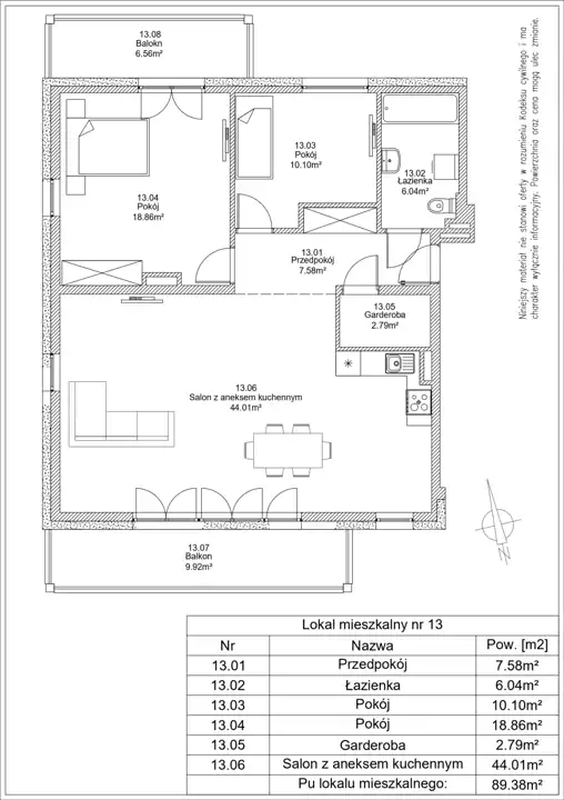 - Charakterystyka mieszkania 89.38 m2, 4 pokoje