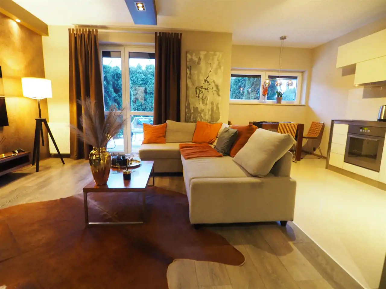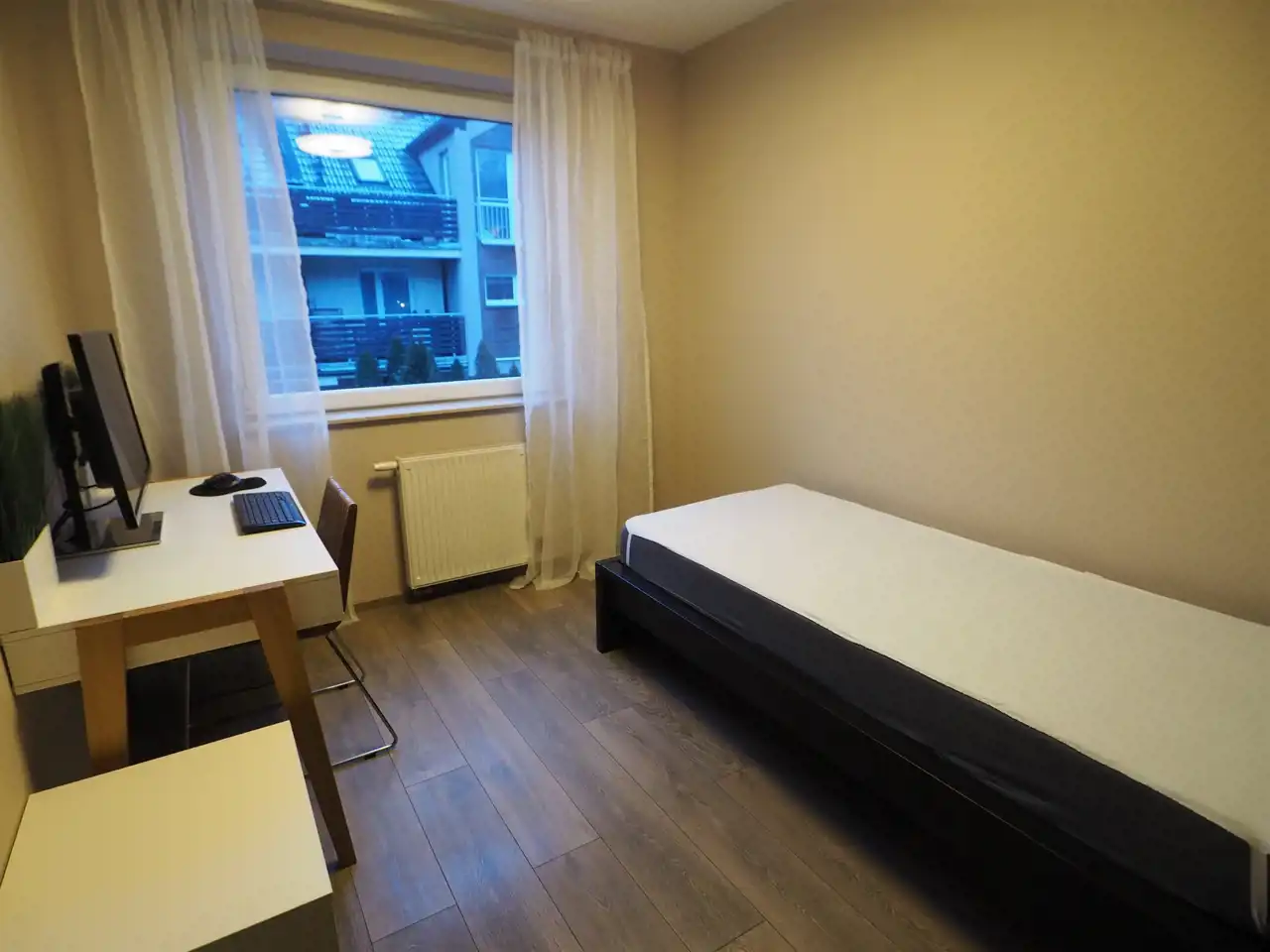 Dodatkowe udogodnienia zapewniające bezpieczeństwo to drzwi antywłamaniowe, rolety antywłamaniowe oraz alarm z czujnikiem ruchu. Apartament jest w pełni umeblowany oraz wyposażony w nowoczesne AGD.