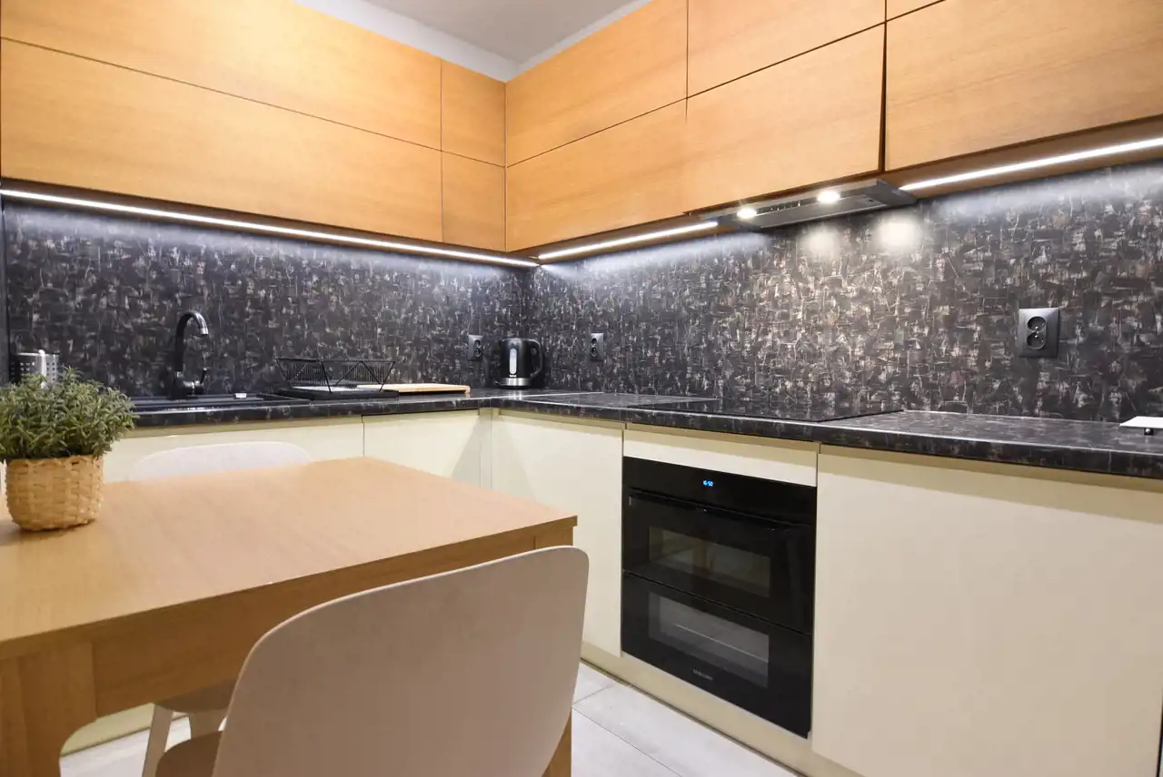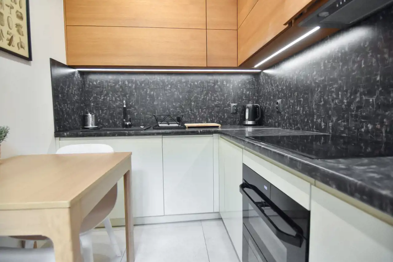 - kuchni, wyposażonej ( lodówka, piekarnik, płyta elektryczna),