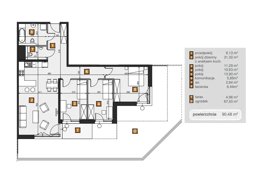 - Charakterystyka mieszkania 90.48 m2, 4 pokoje