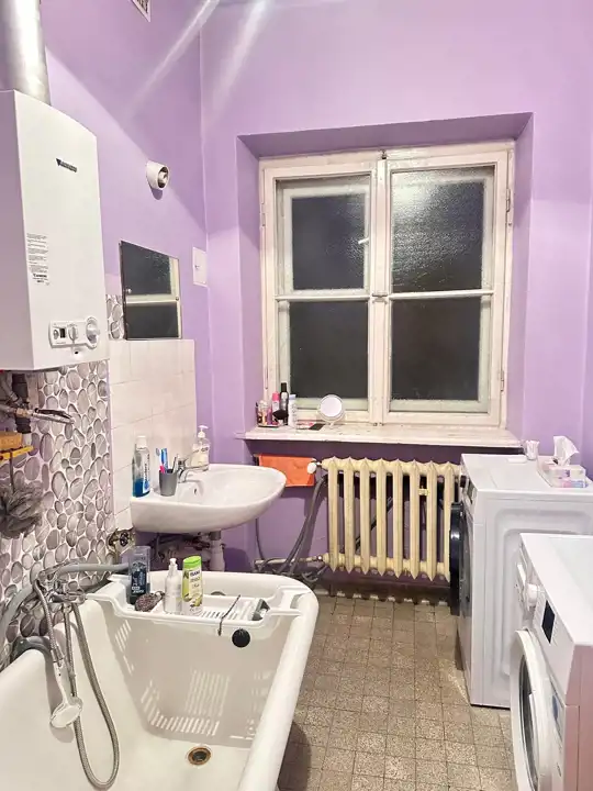 - Media Ogrzewanie: C.O. miejskie; Woda: ciepła - piecyk gazowy